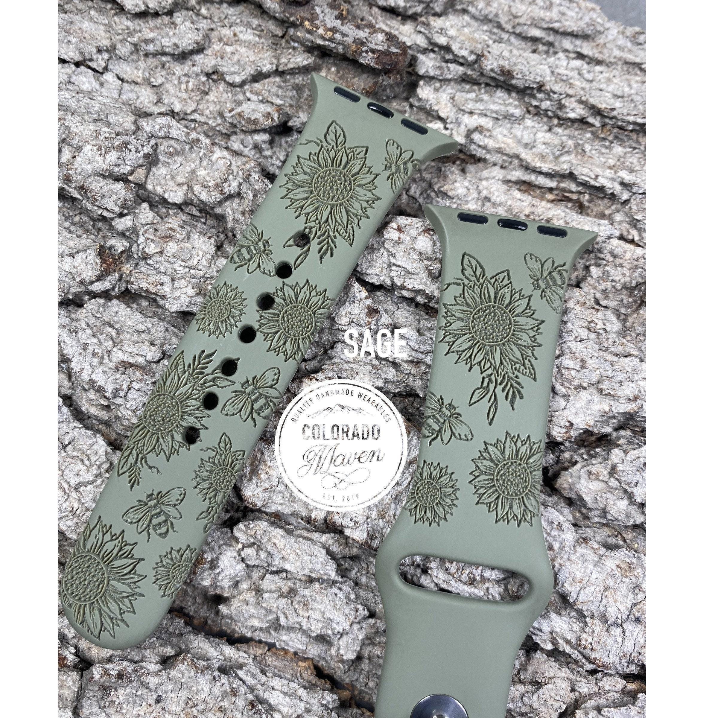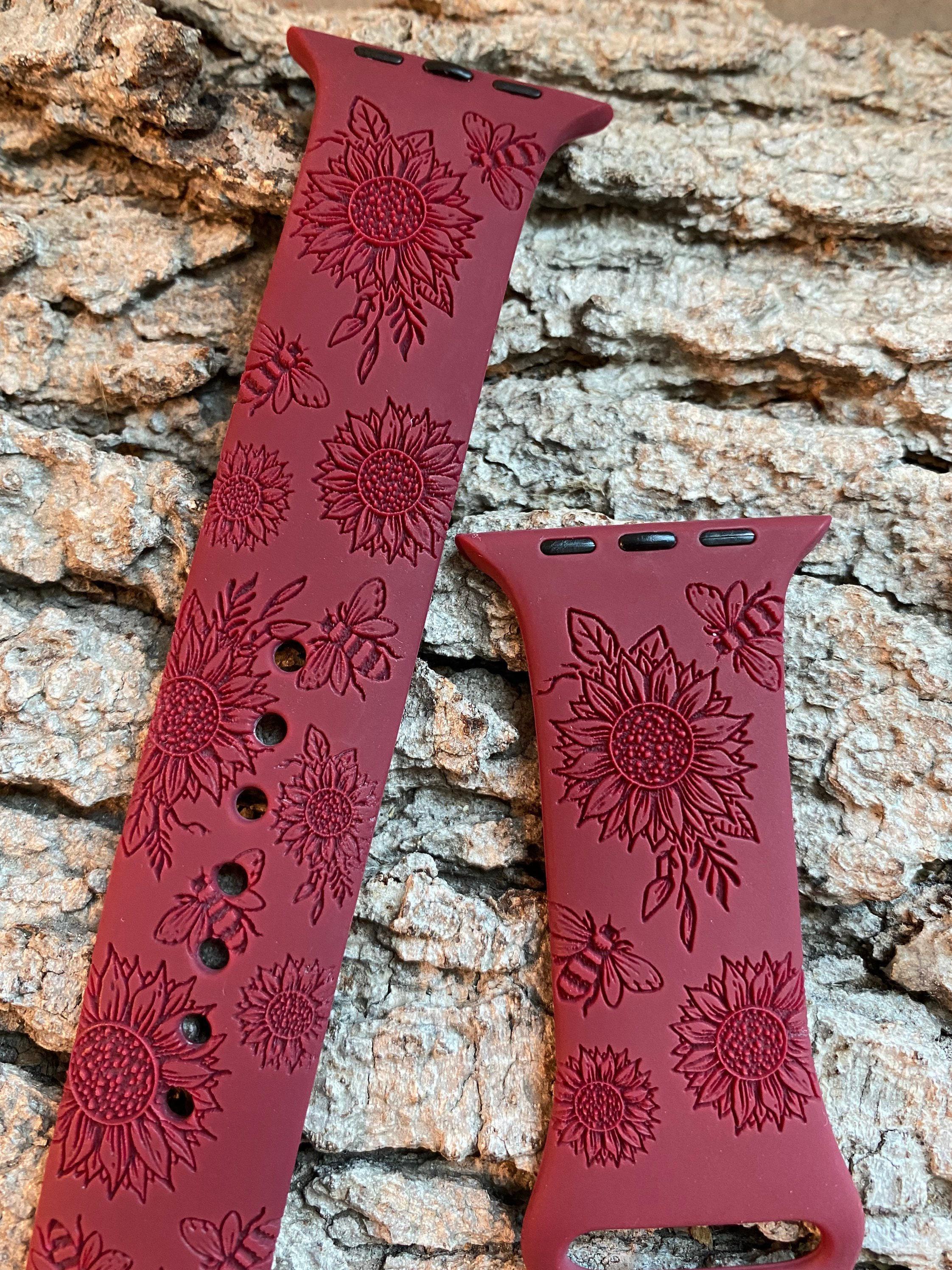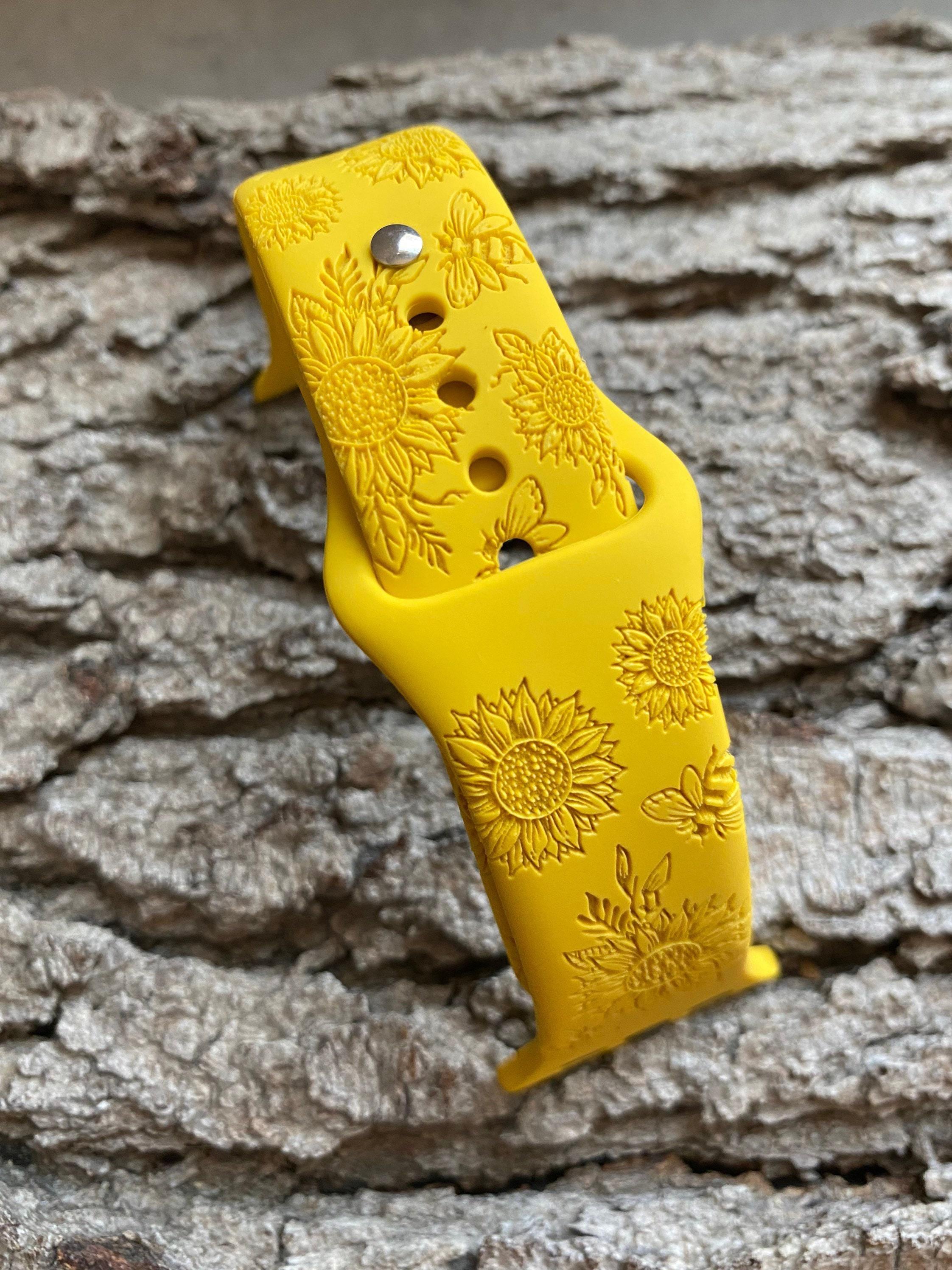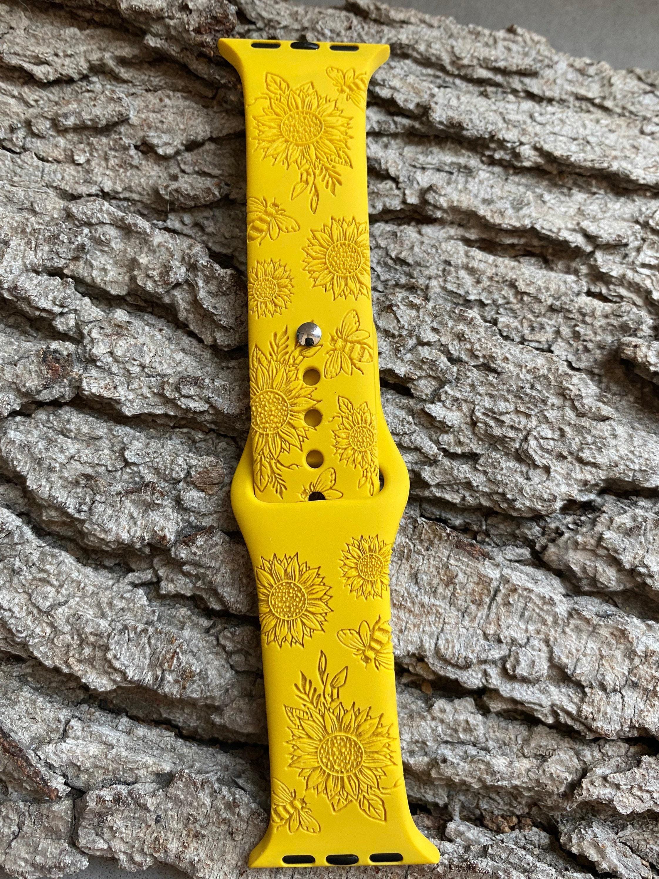 Sunflowers and Bees Silicone Band Laser Engraved, Apple Watch Compatible Series 1-11, SE 1-3 & Ultra 1-3