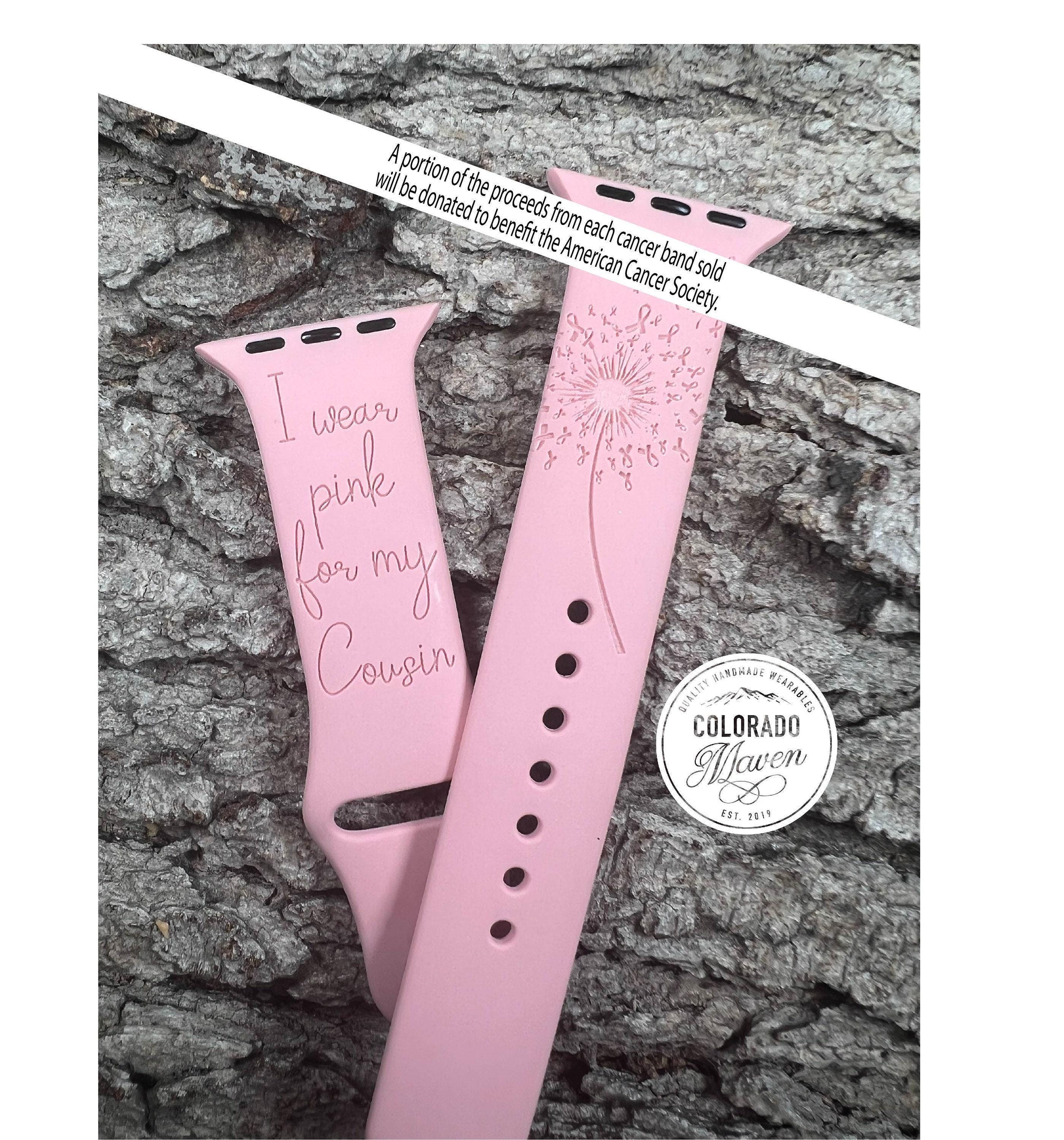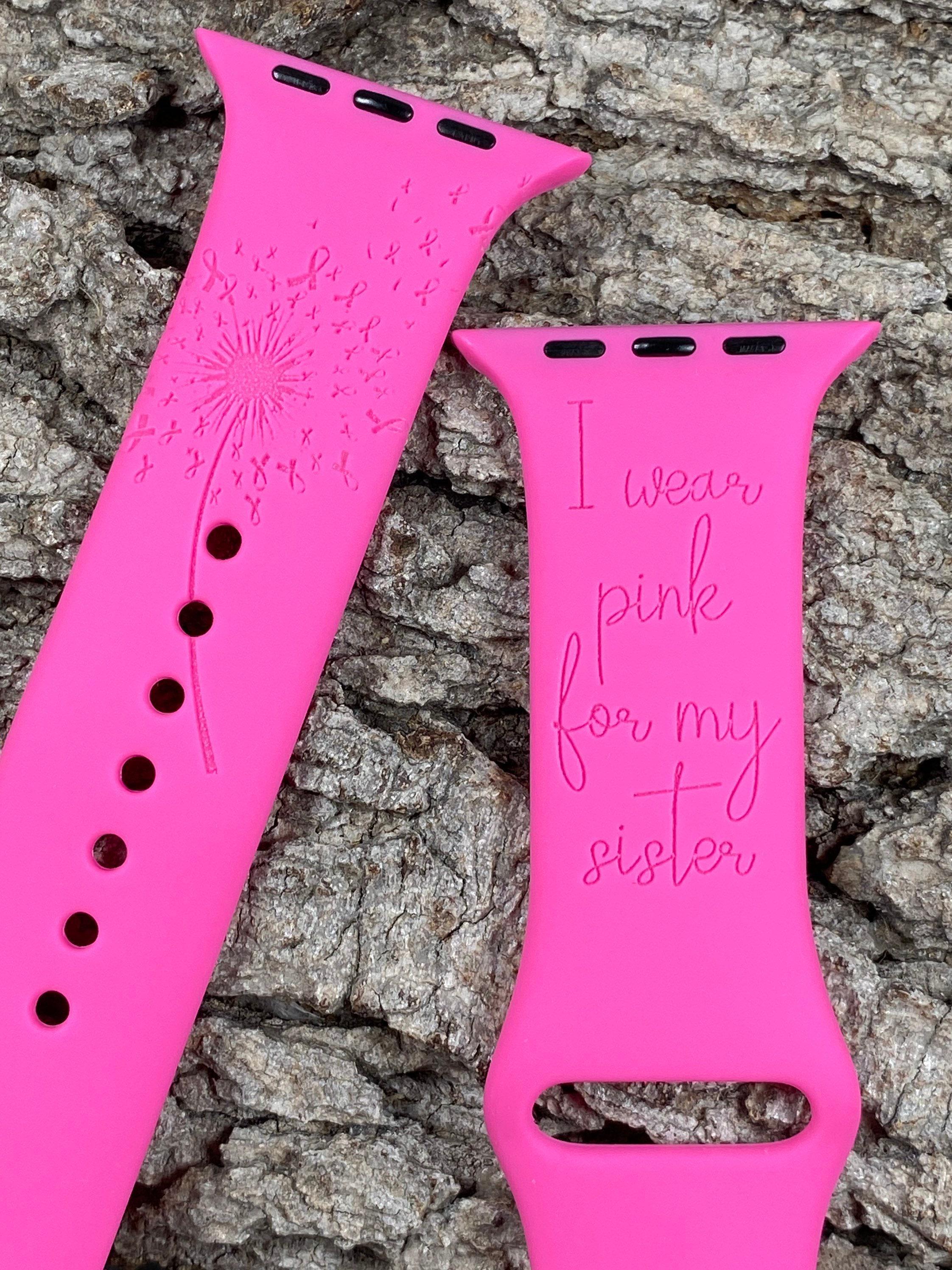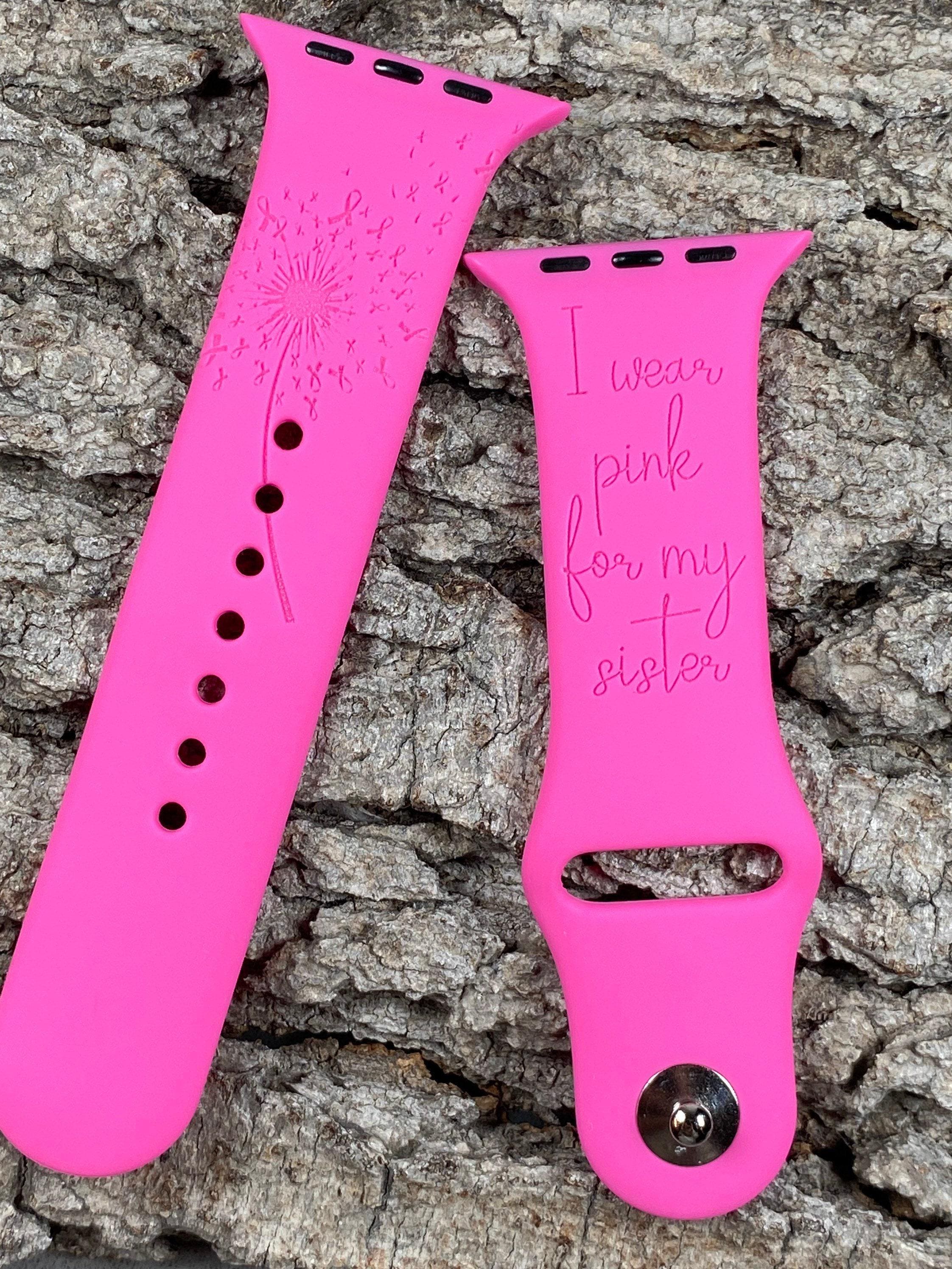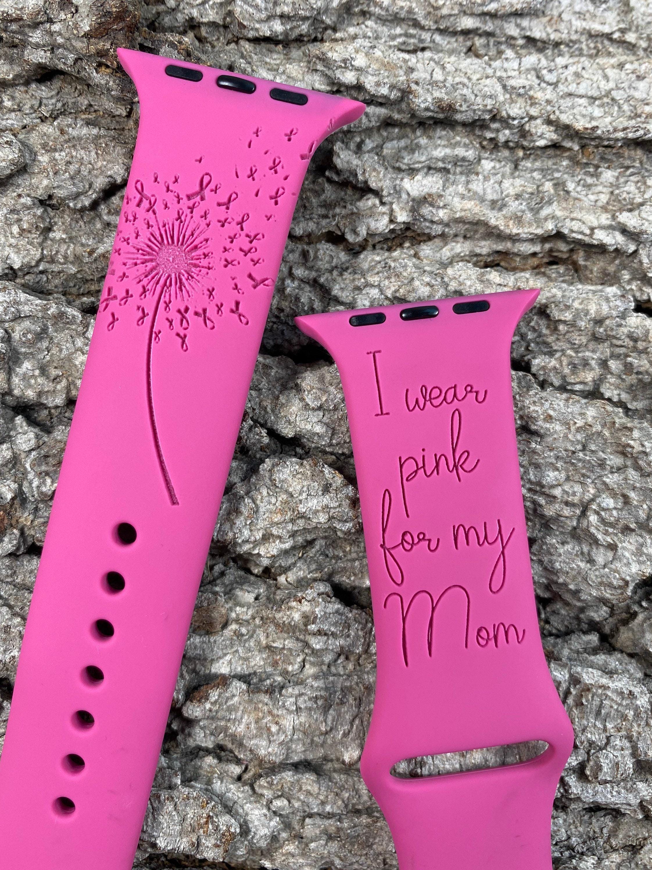 Breast Cancer “I wear pink for my” mom, sister, aunt, grandma. Silicone Band Laser Engraved - multiple options, Compatible with Apple Watch