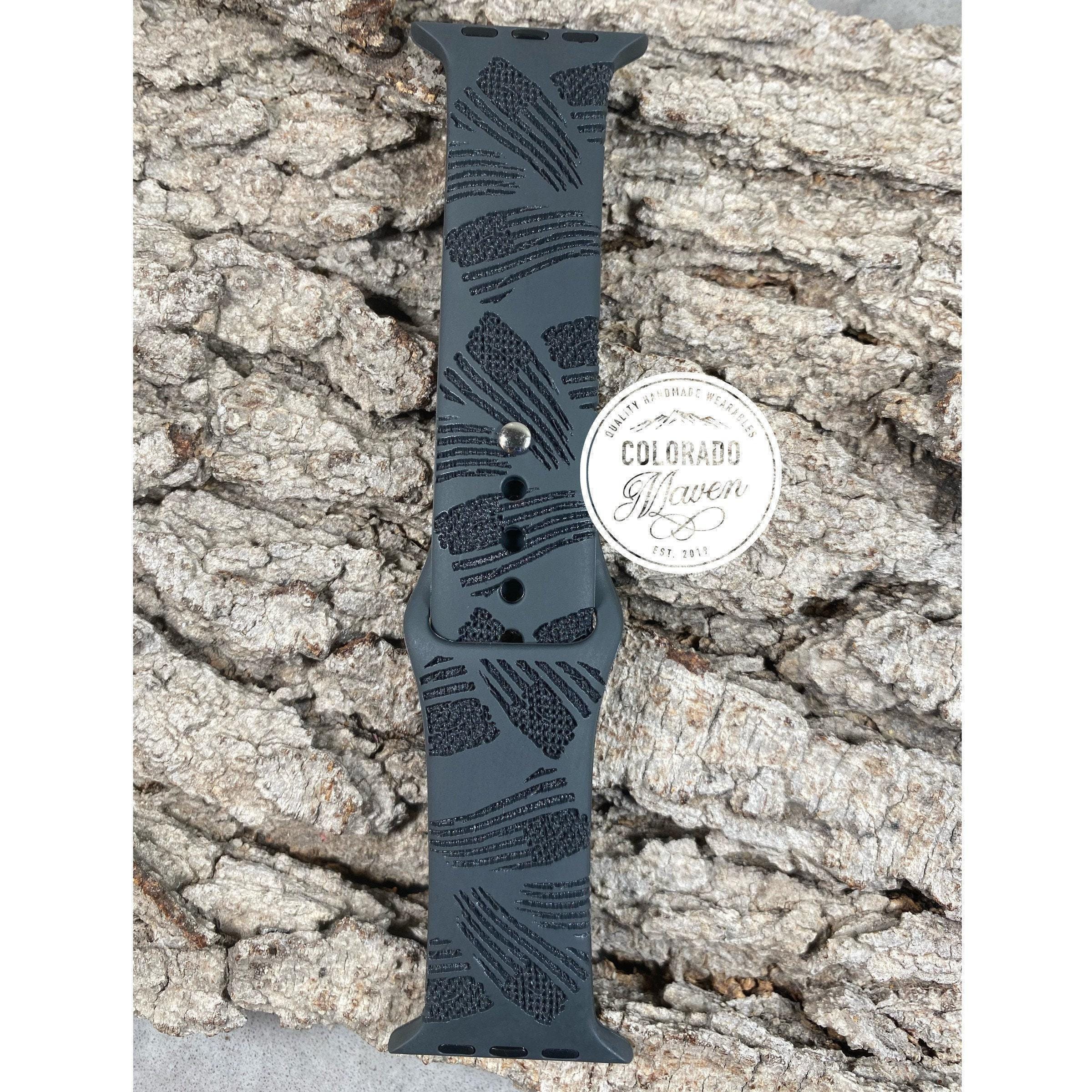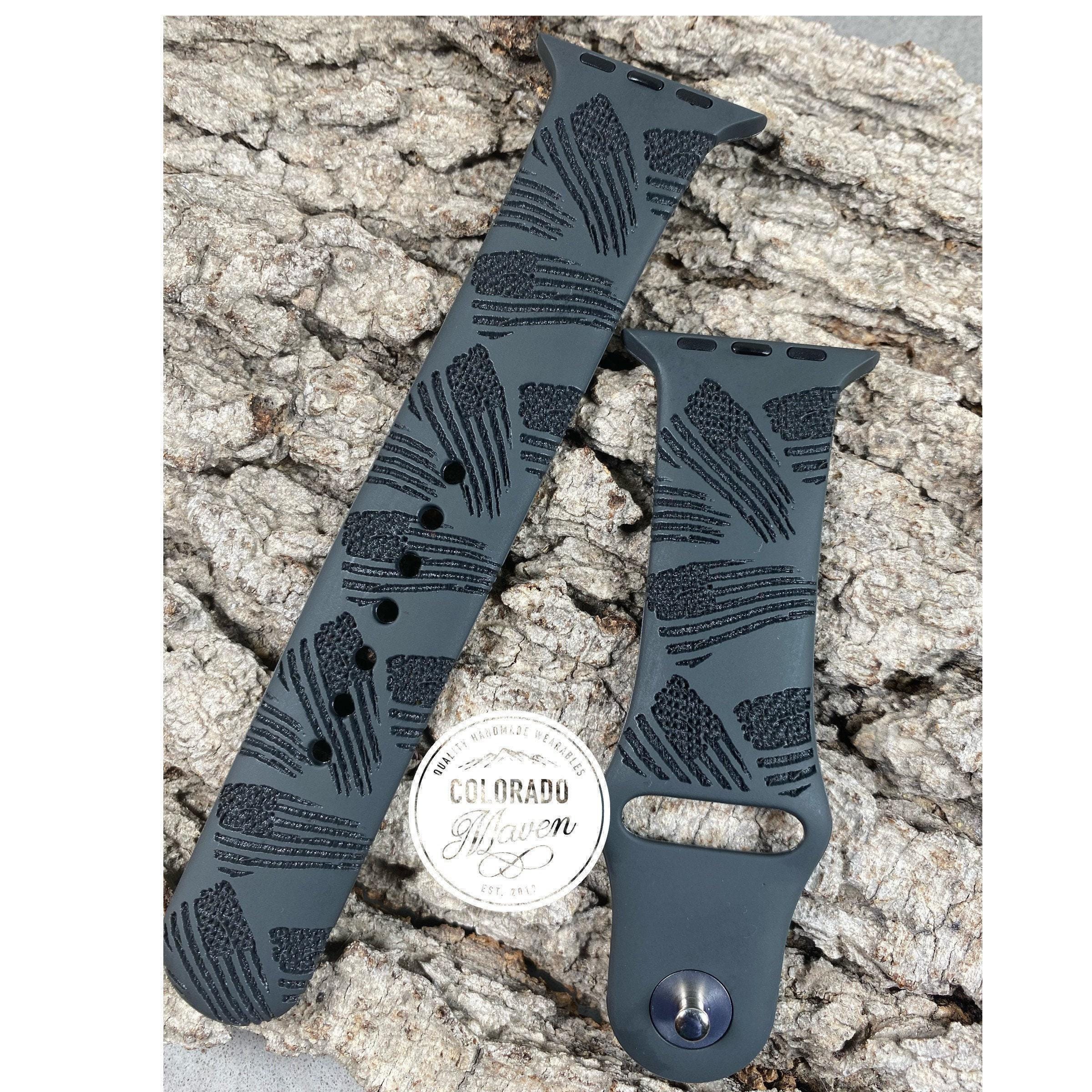 American flag print silicone watch band laser engraved for a subtle look. Great gift for men and women!