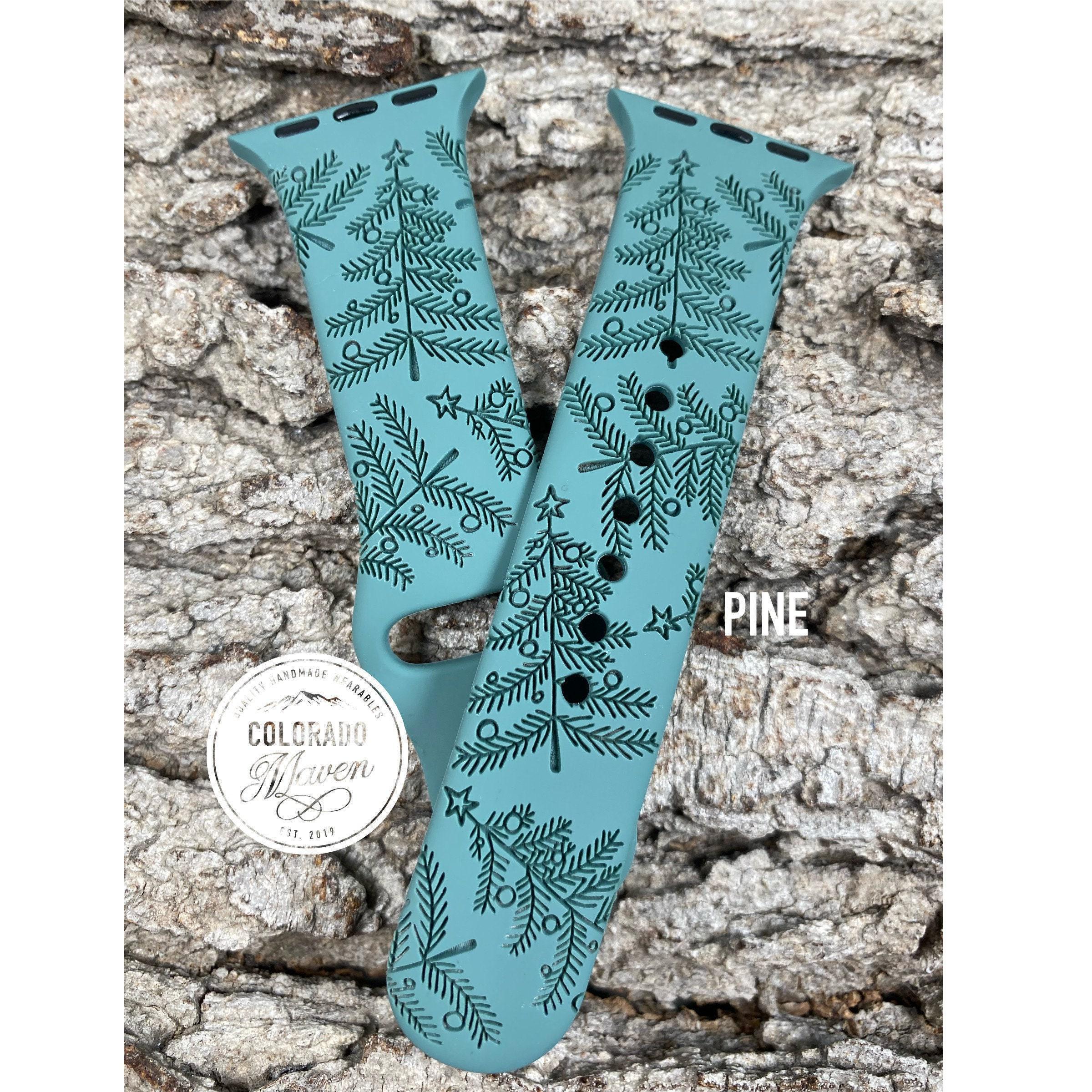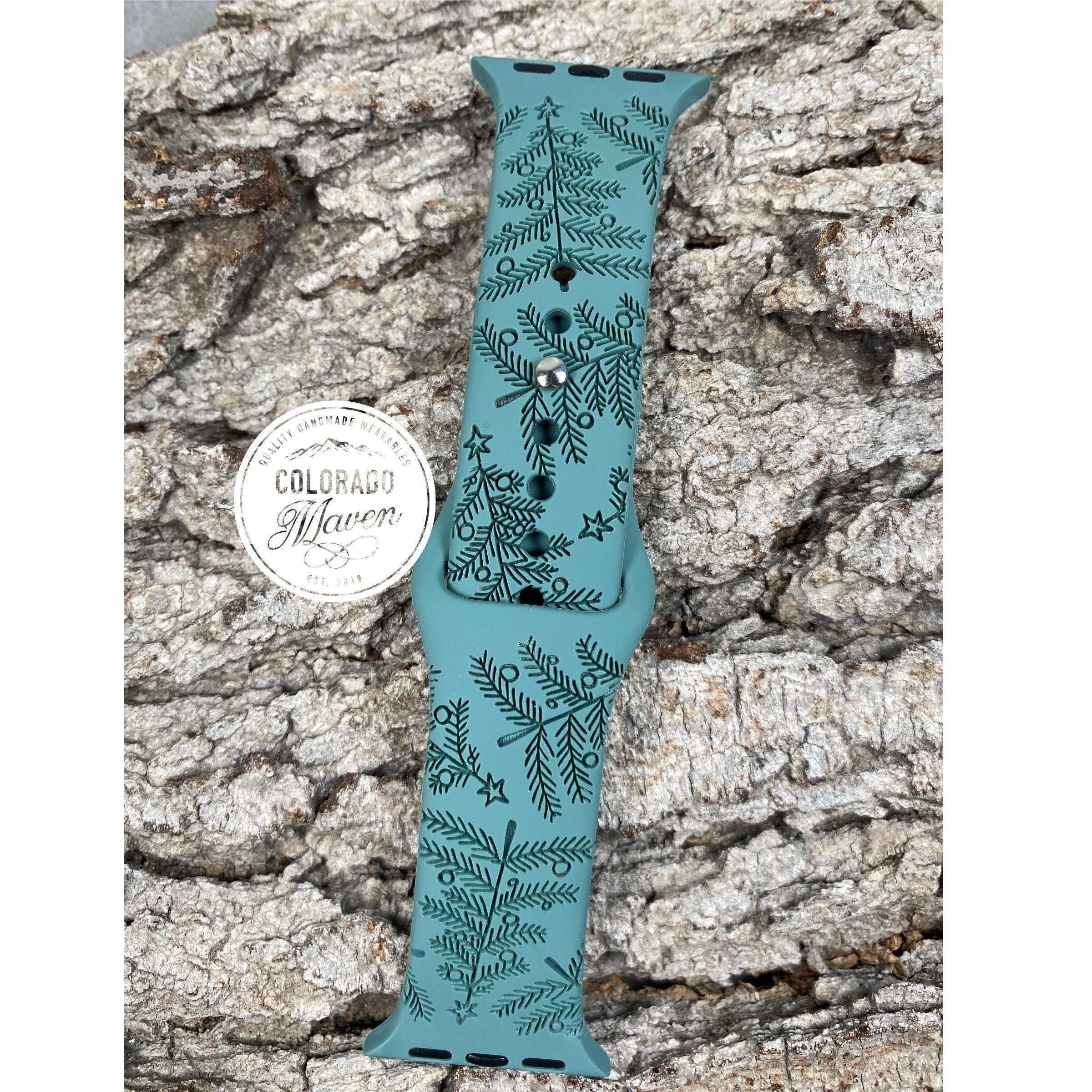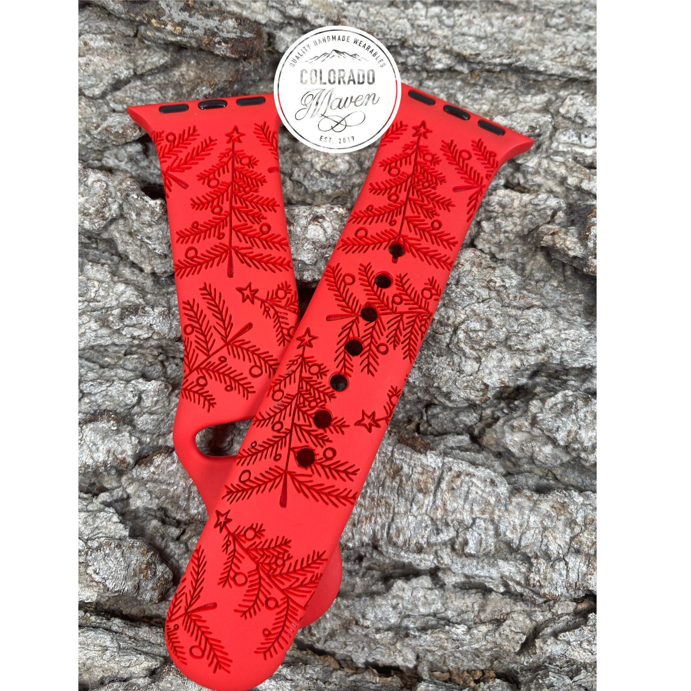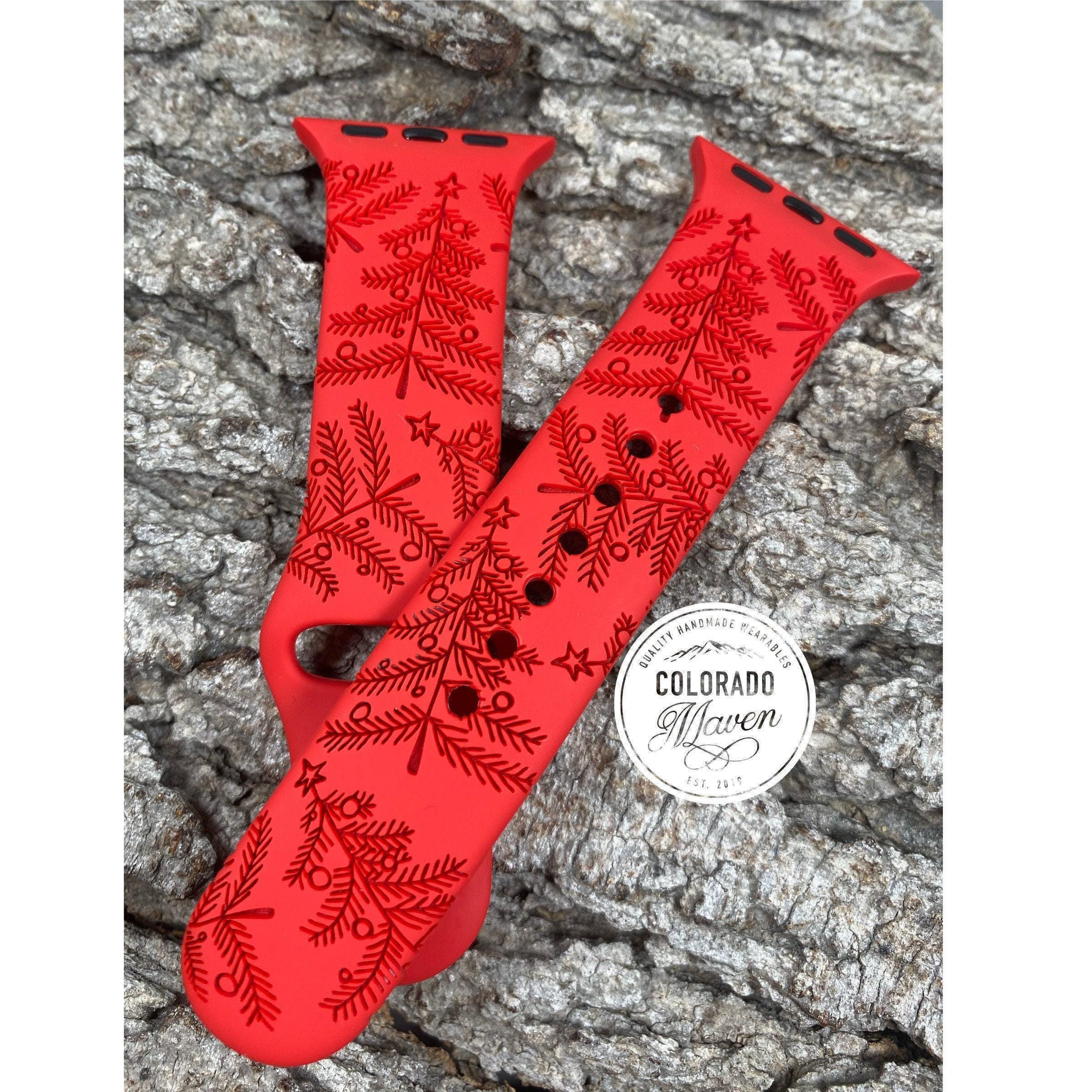 Christmas Tree Holiday Design Silicone Watch Band Laser Engraved, Apple Watch Compatible Series 1-11, SE 1-3 & Ultra 1-3