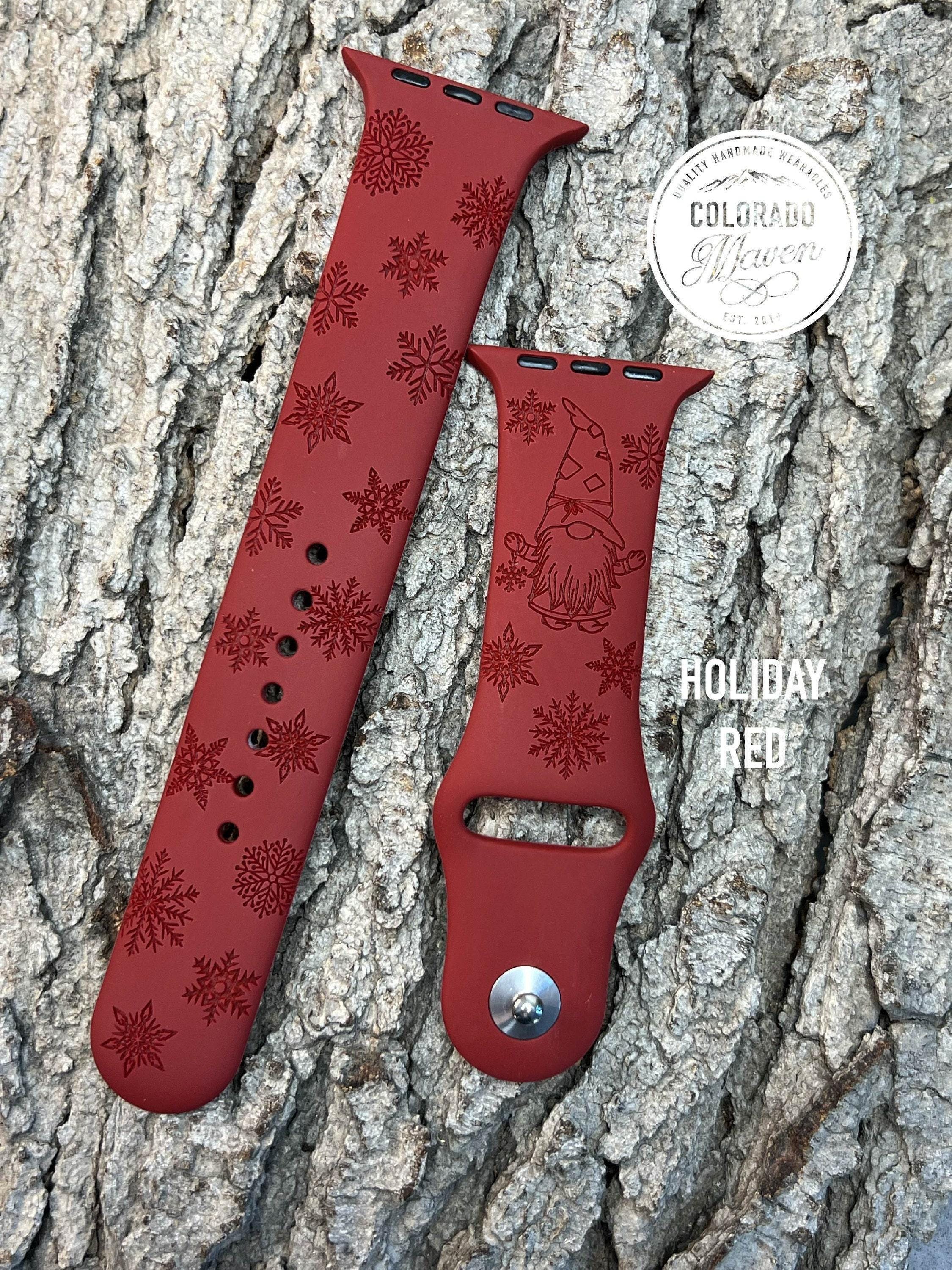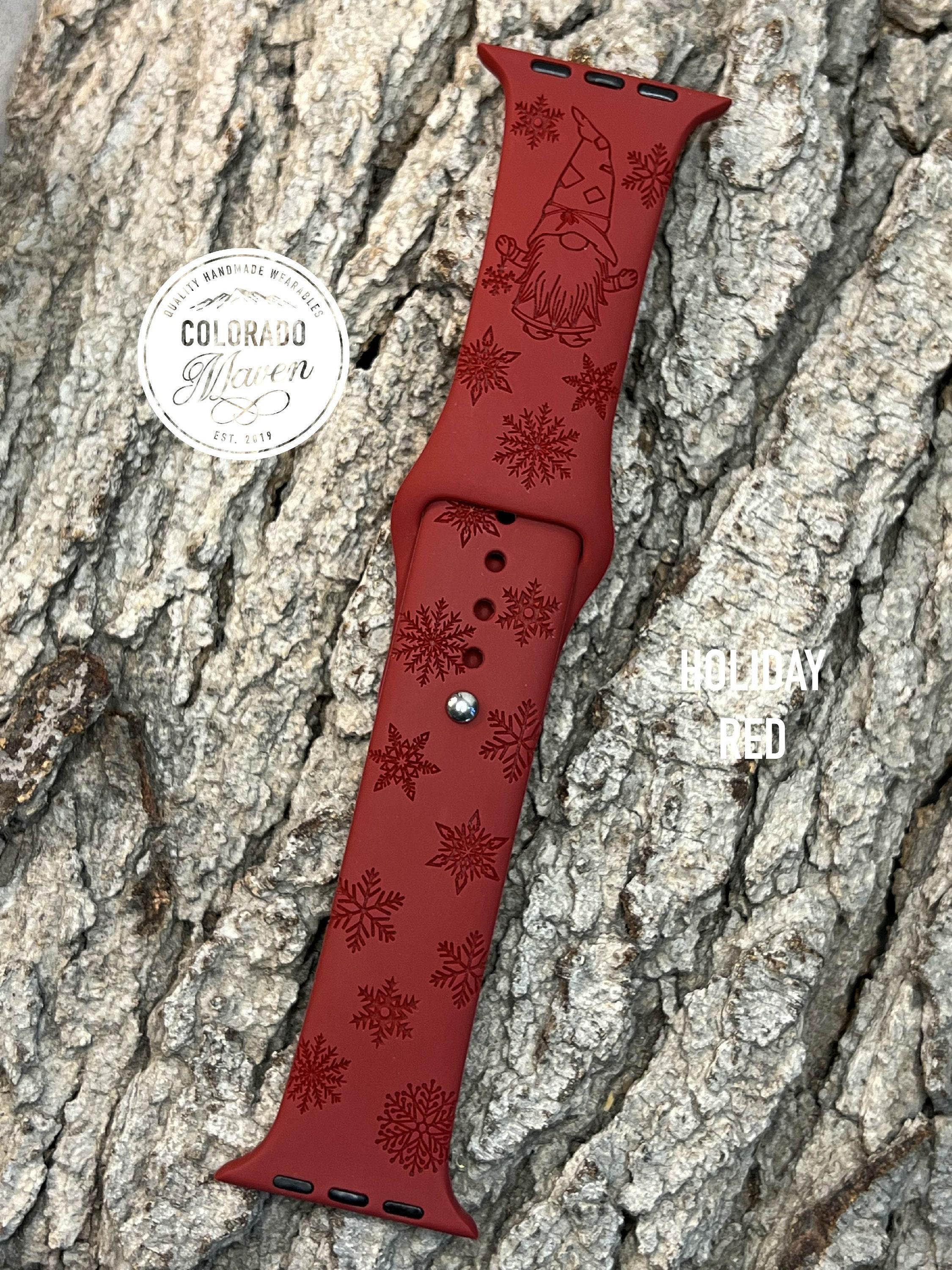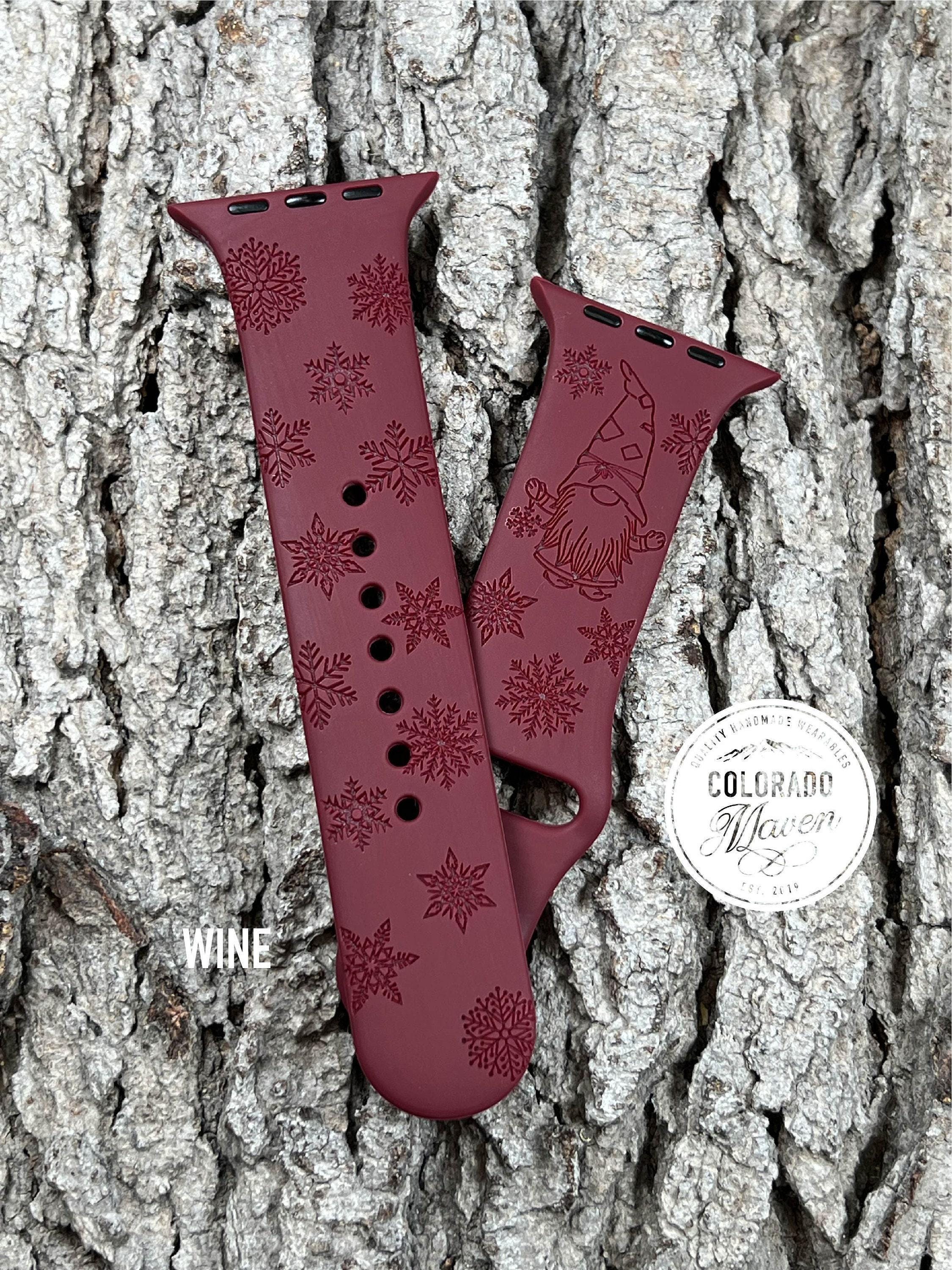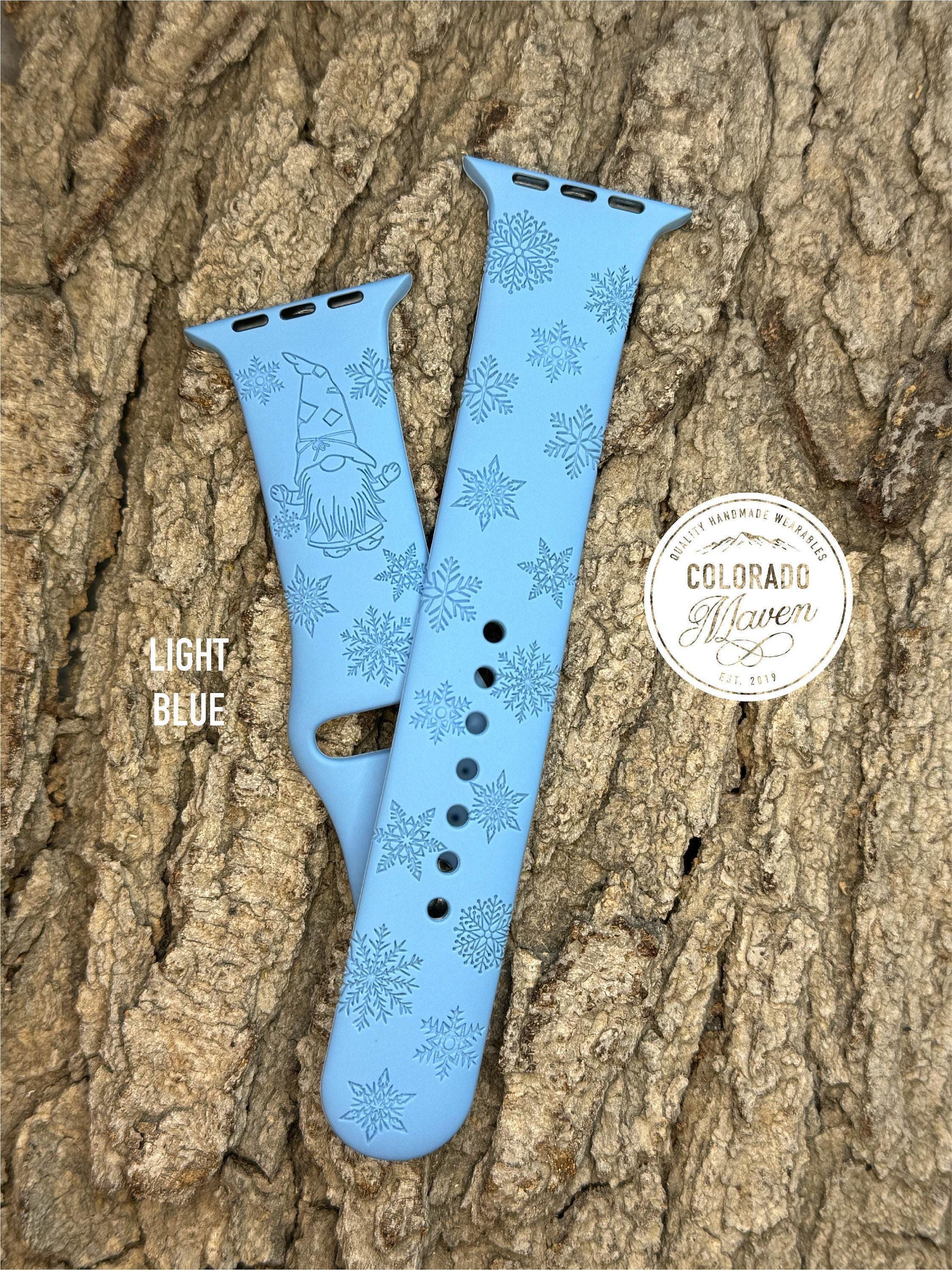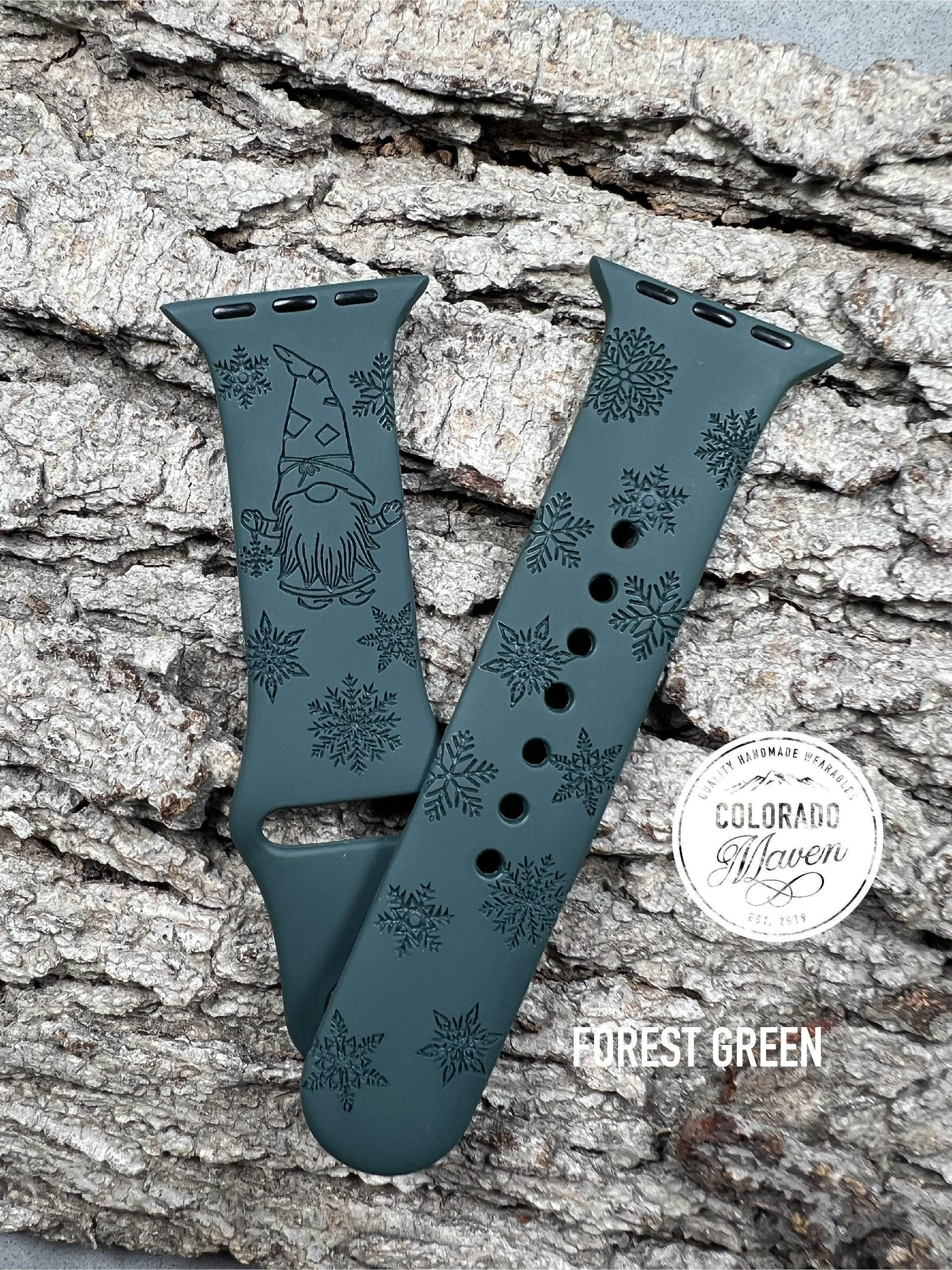 Gnome Winter Snowflake Design Silicone Watch Band Laser Engraved, Apple Watch Compatible Series 1-11, SE 1-3 & Ultra 1-3