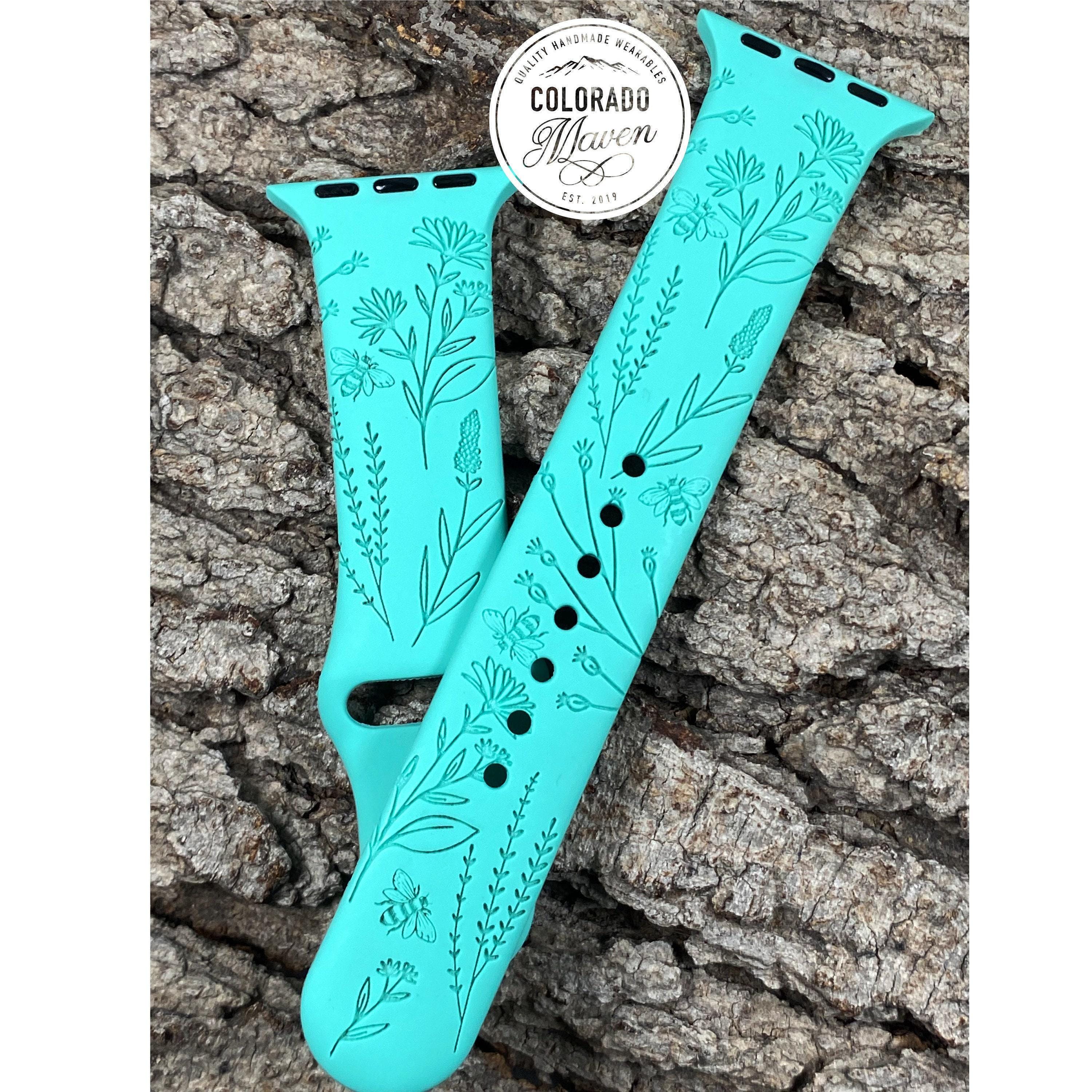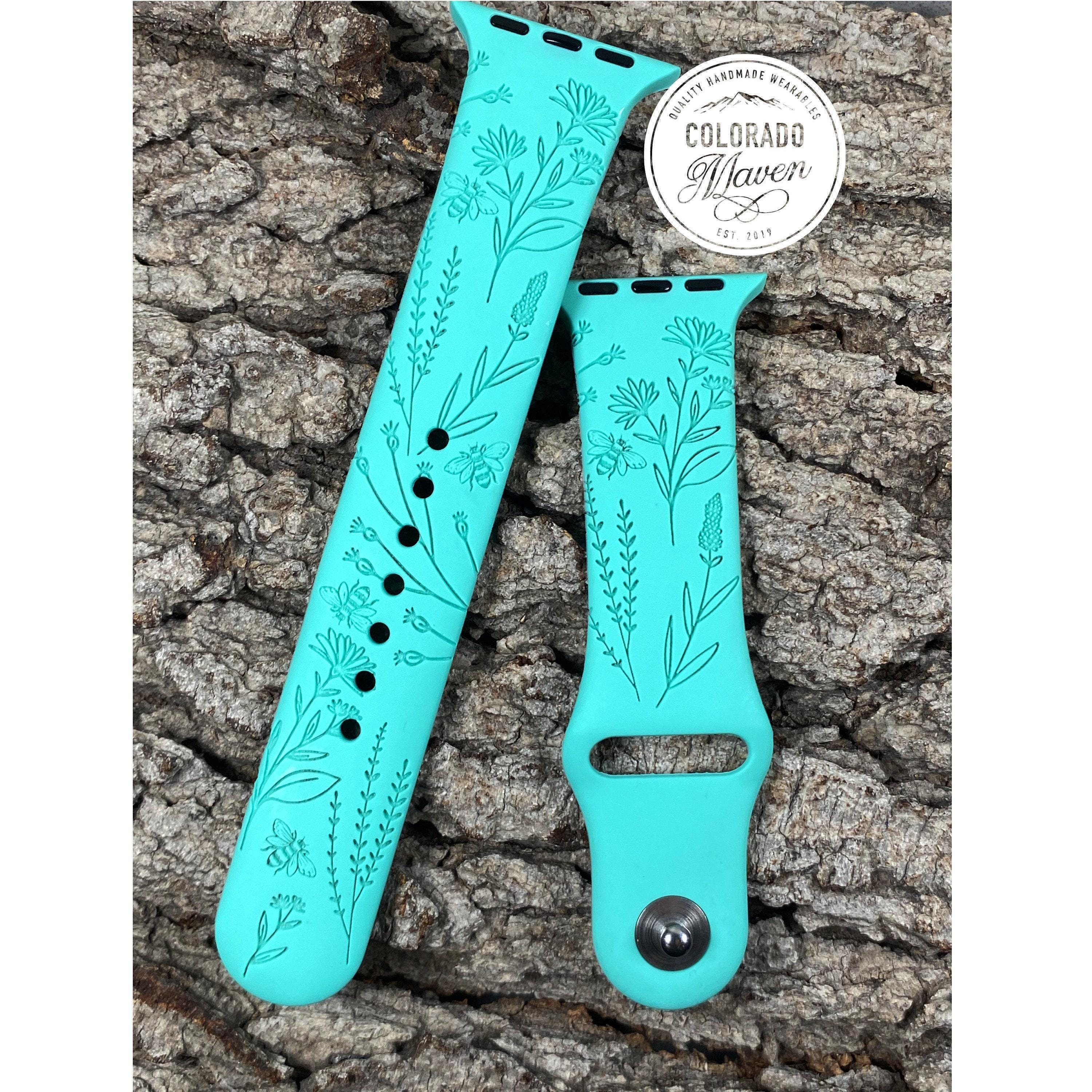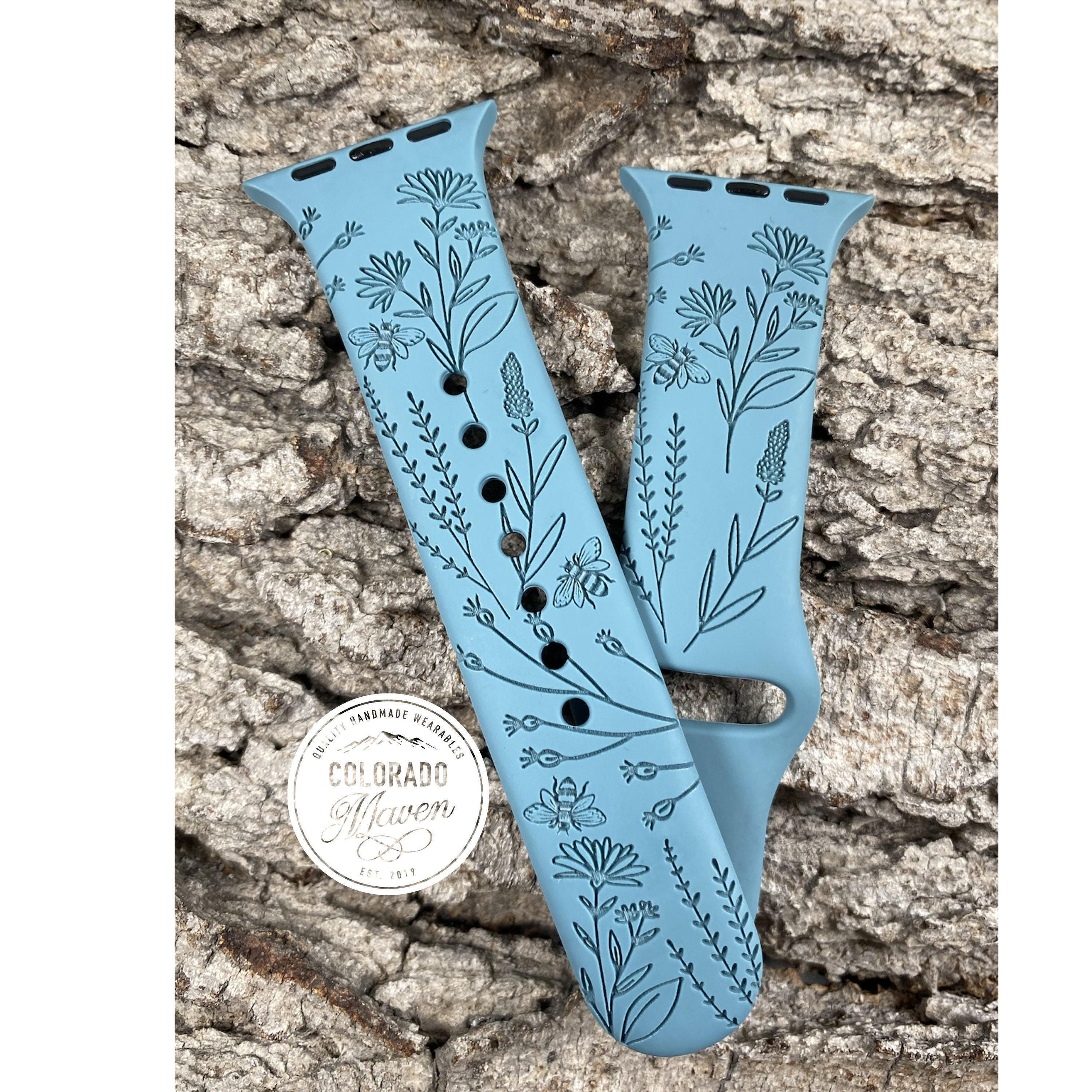 Bees and Wildflowers Silicone Band Laser Engraved, Apple Watch Compatible Series 1-11, SE 1-3 & Ultra 1-3