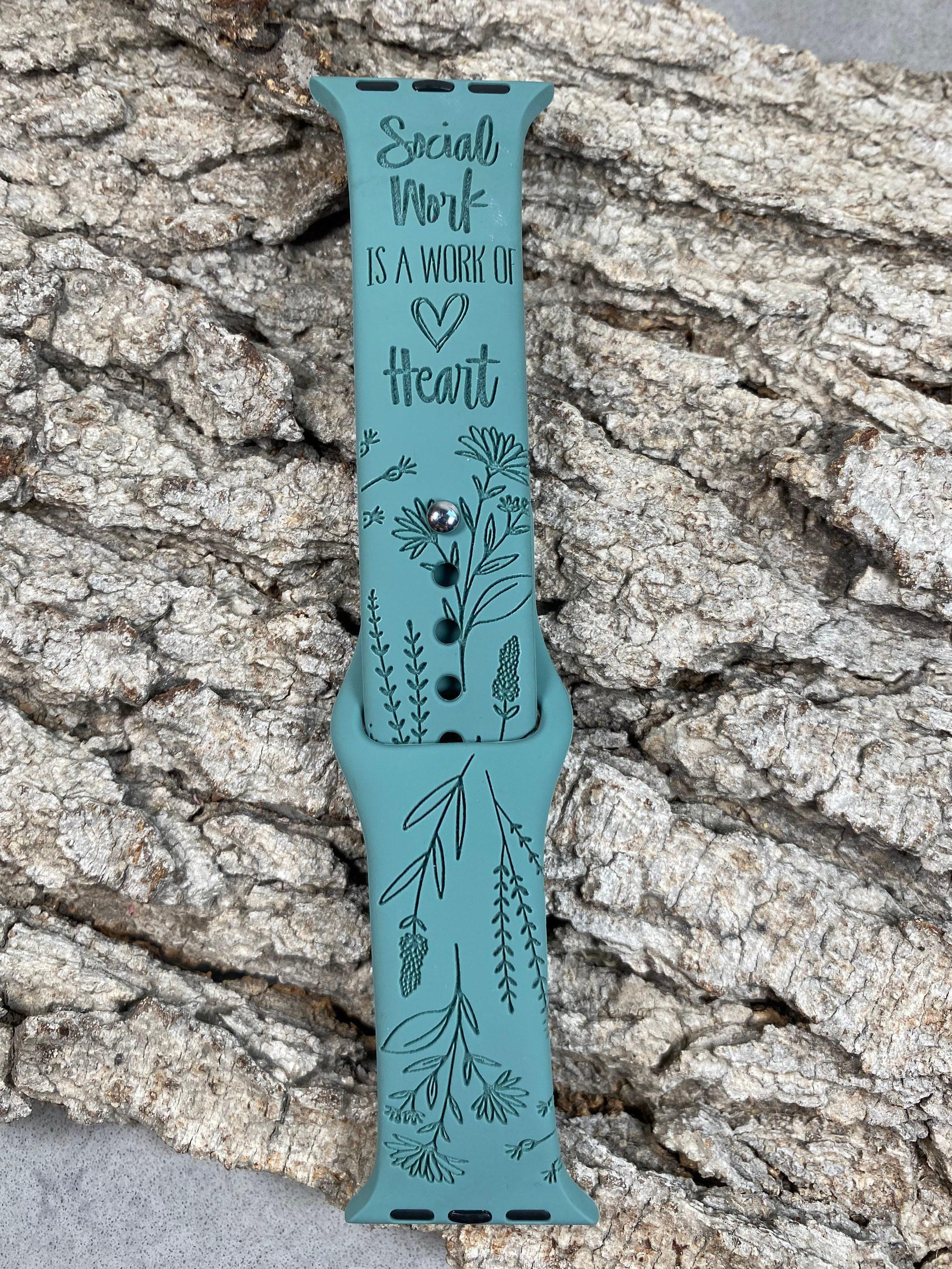 Social Work is a Work of Heart Silicone Watch Band Laser Engraved, Apple Watch Compatible Series 1-11, SE 1-3 & Ultra 1-3