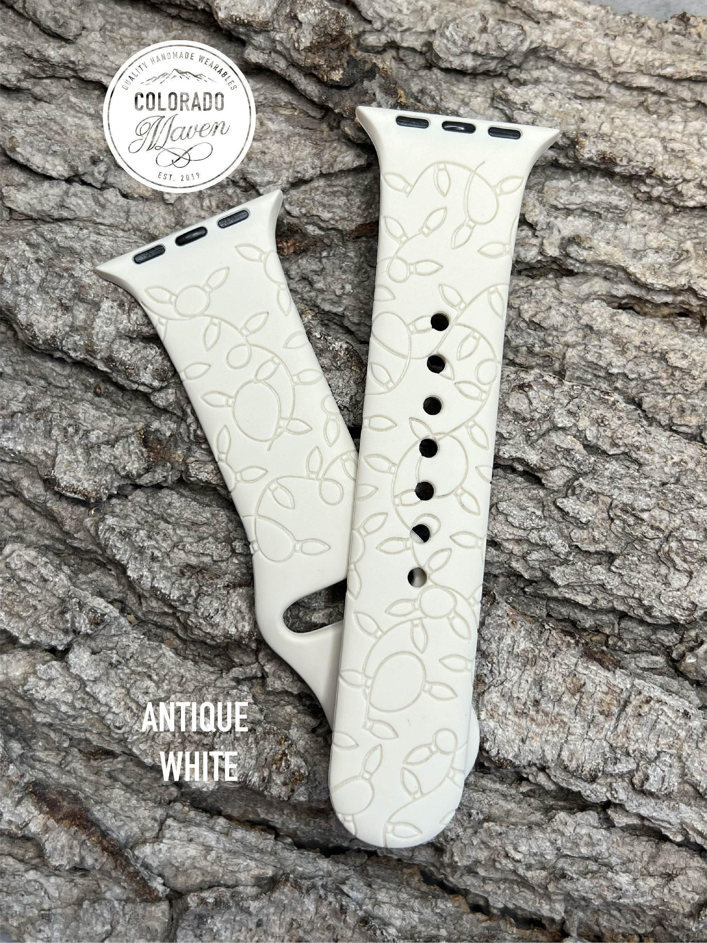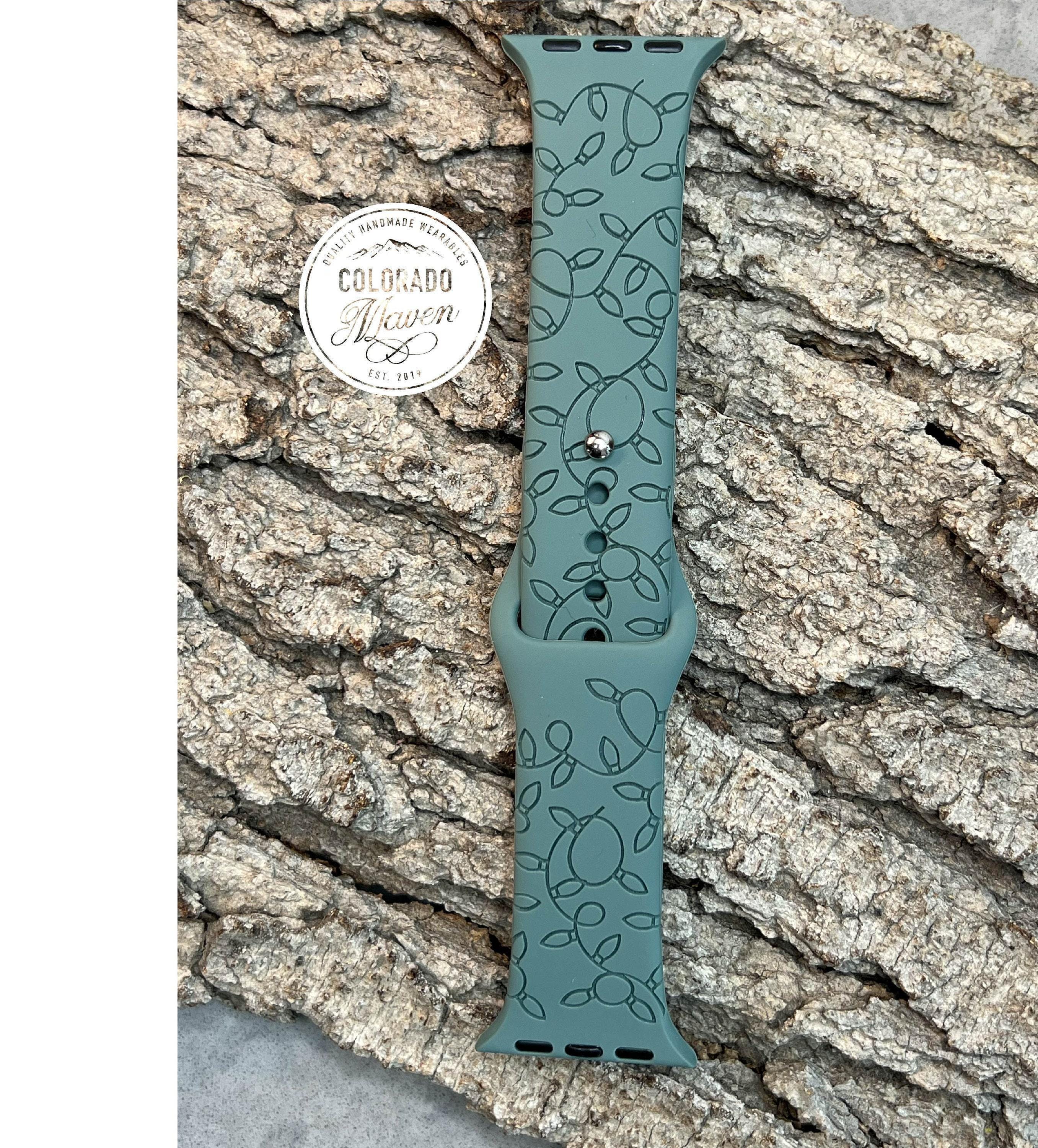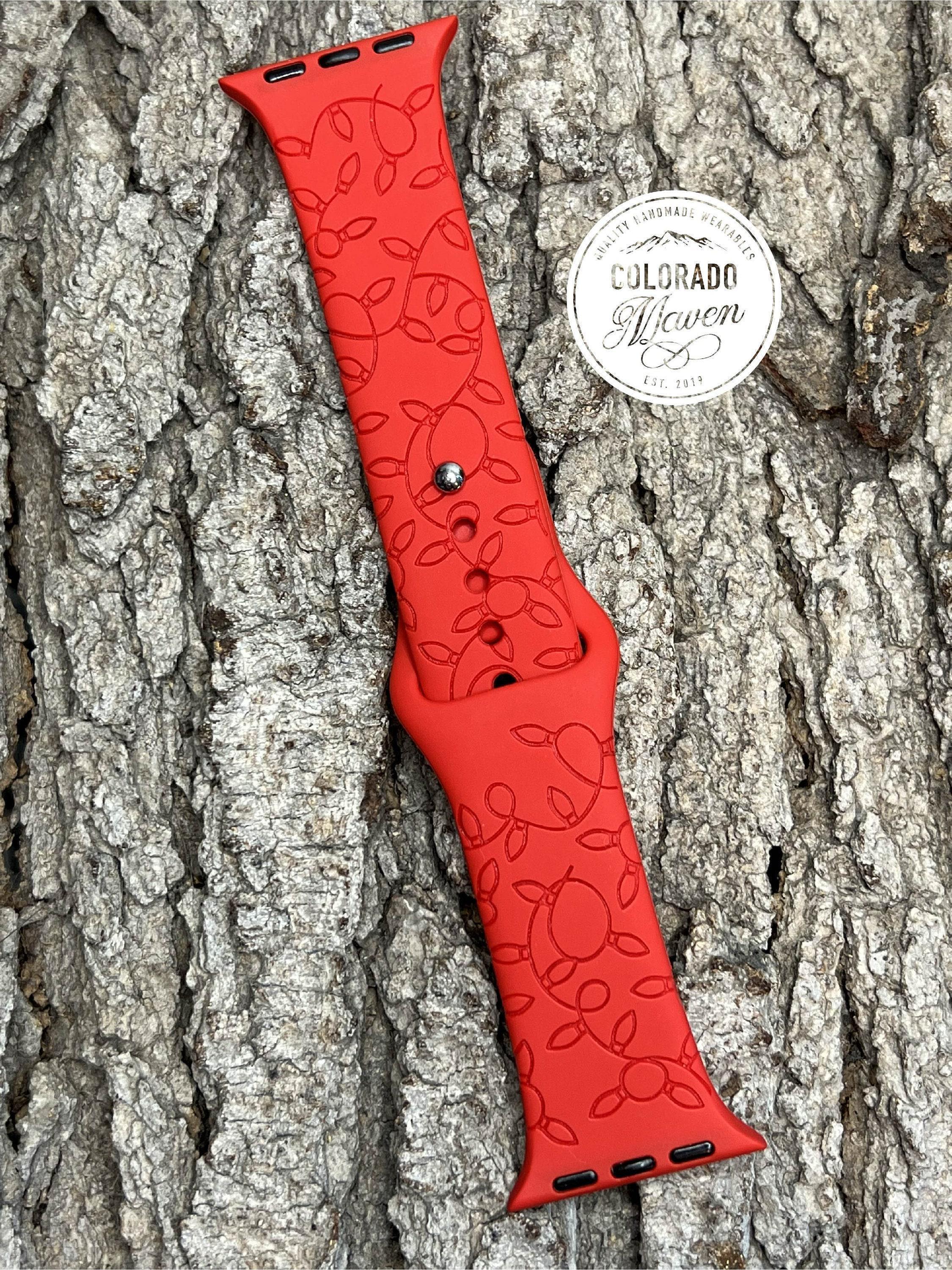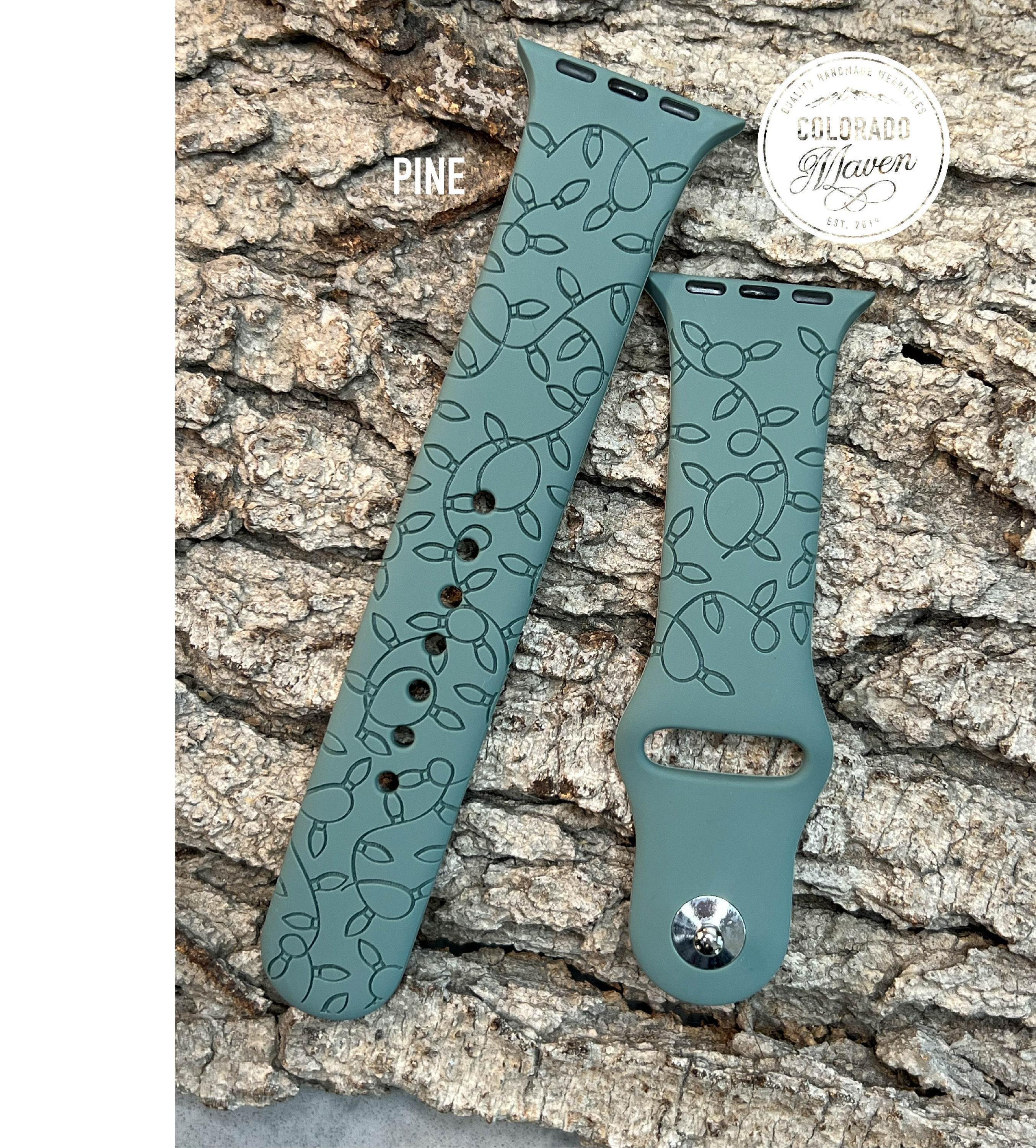 String Lights Christmas Holiday Silicone Watch Band Laser Engraved, Apple Watch Compatible Series 1-11, SE 1-3 & Ultra 1-3