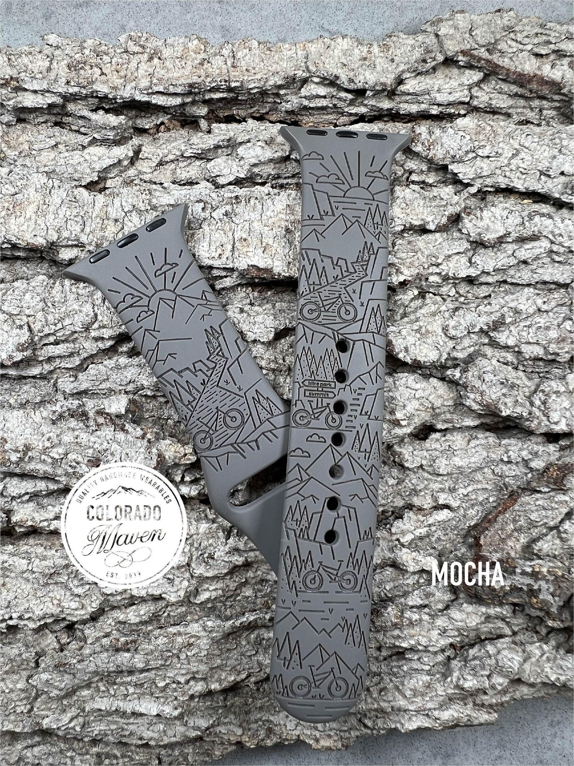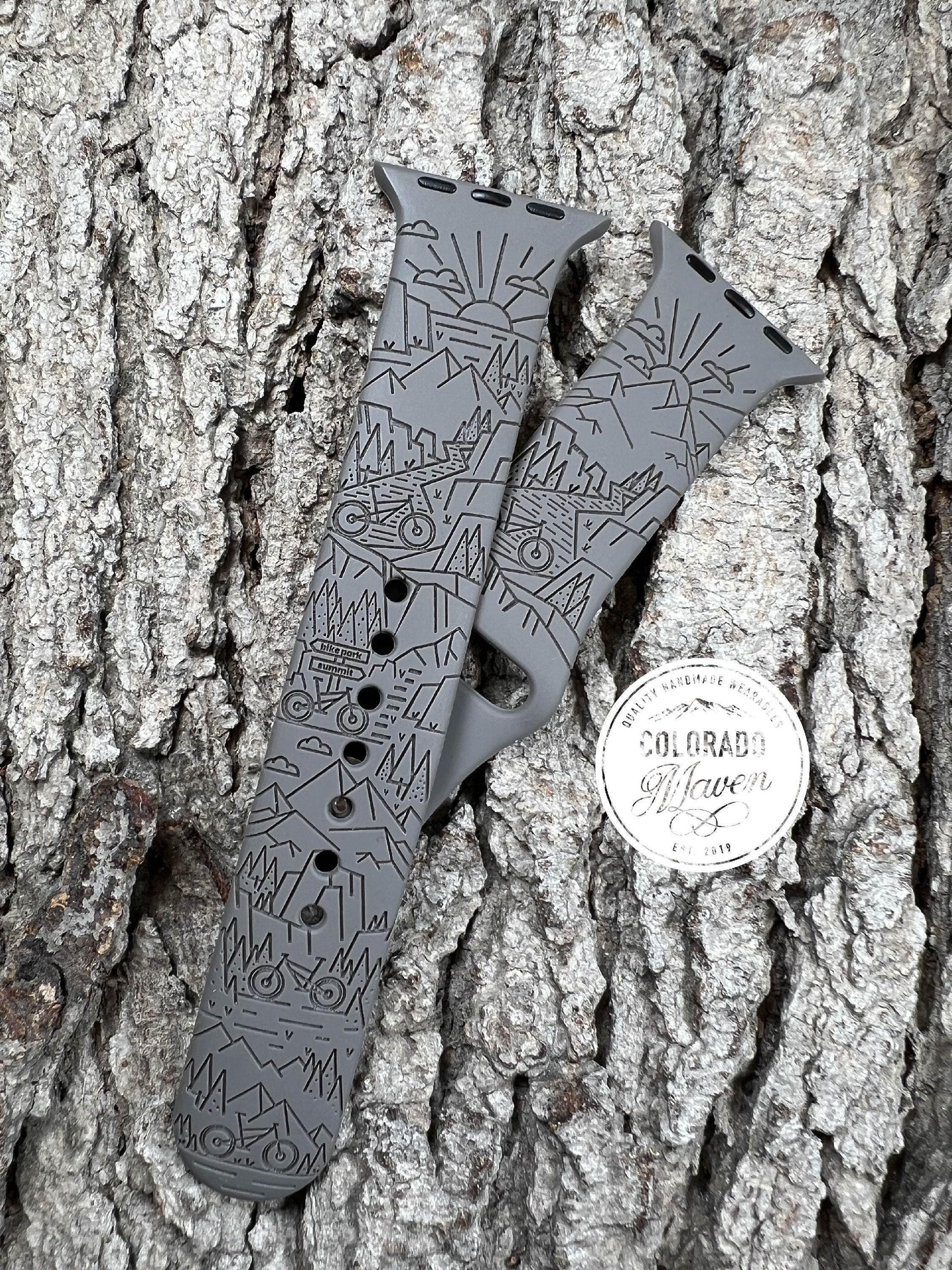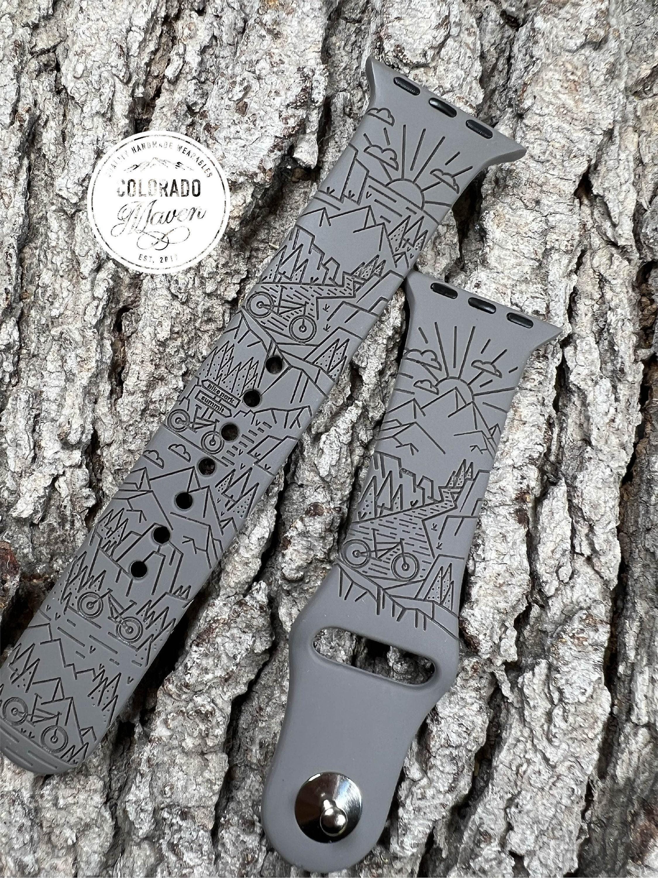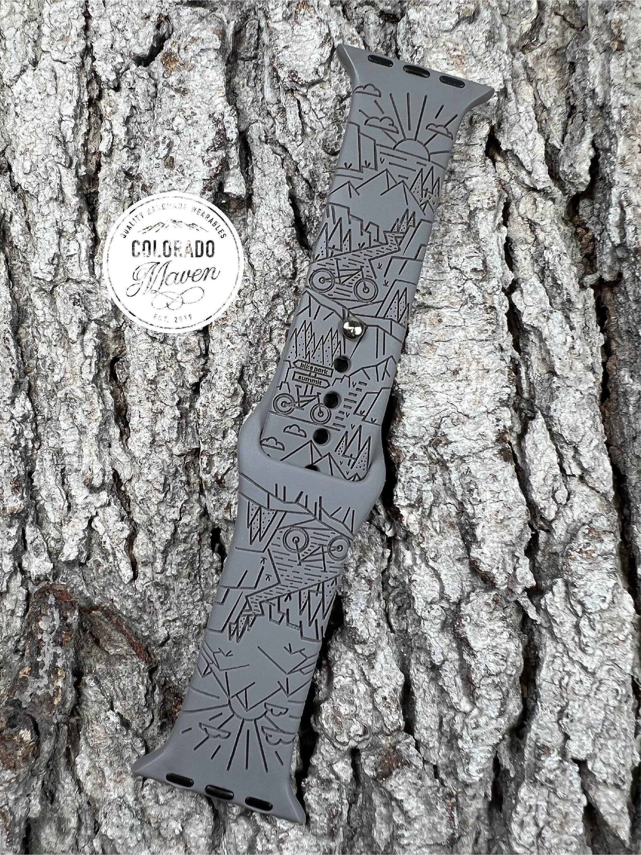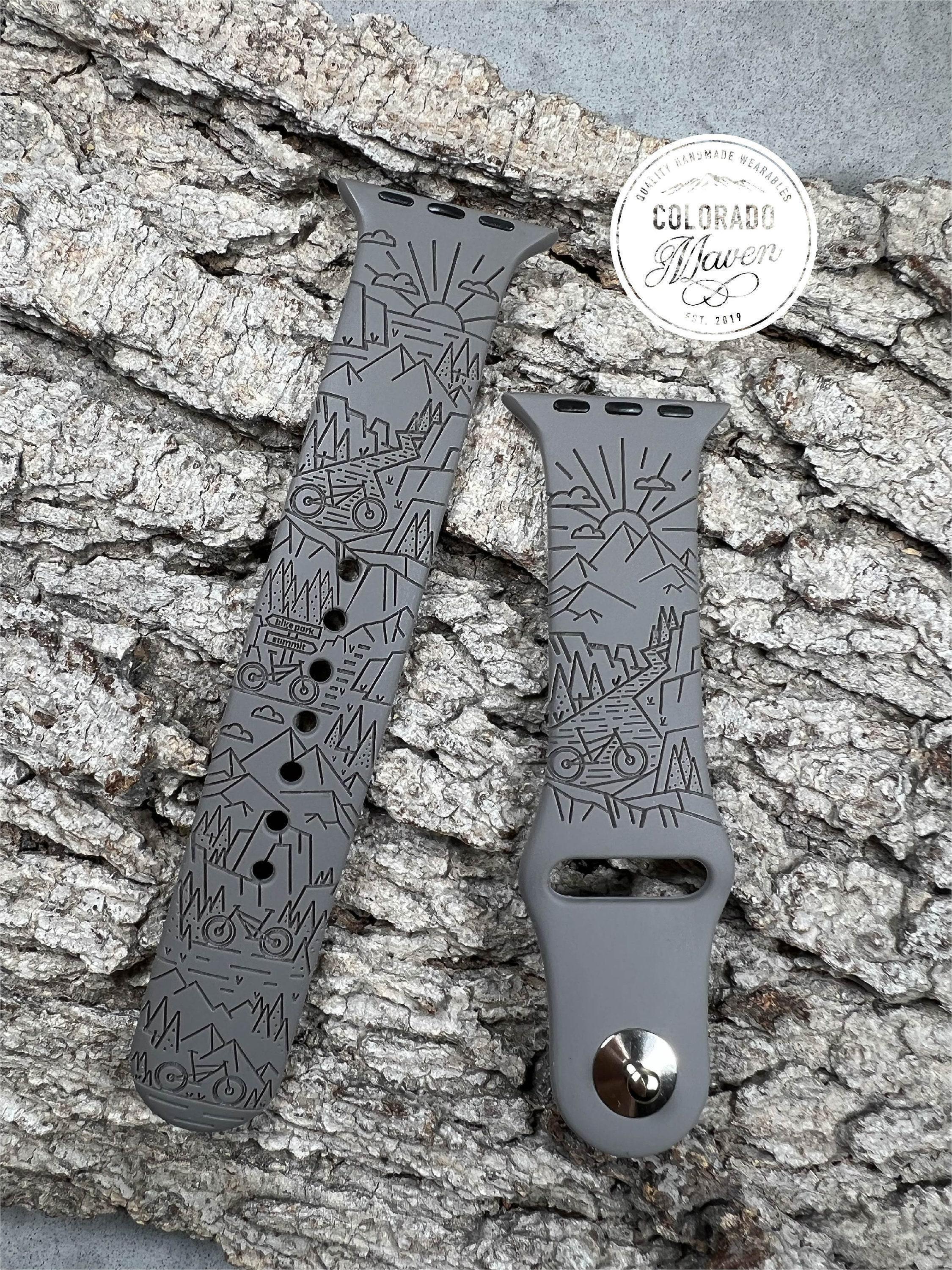 Mountain Bike Watch Band Silicone Laser Engraved, Apple Watch Compatible Series 1-11, SE 1-3 & Ultra 1-3