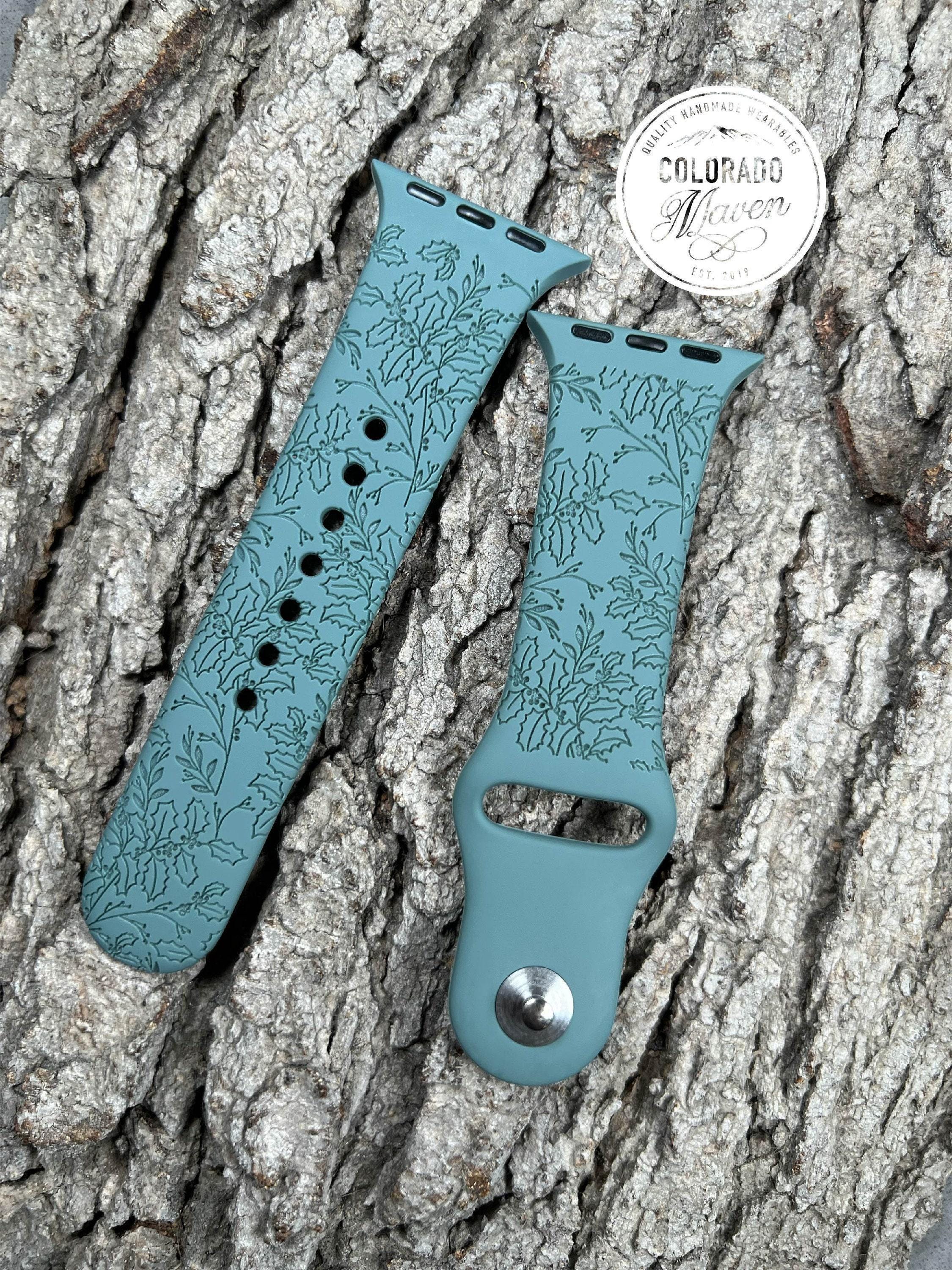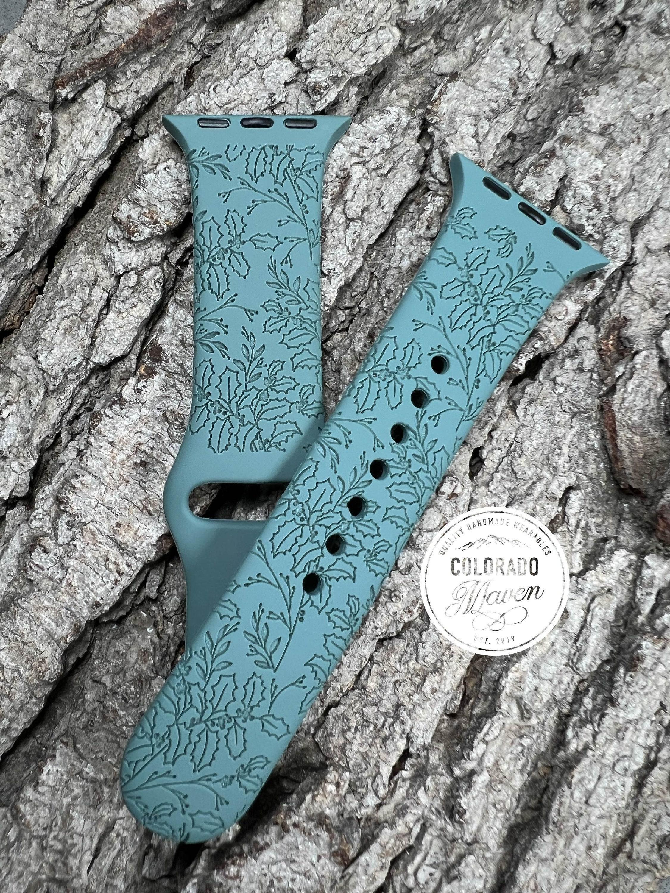 Holly Floral Christmas Design Silicone Watch Band Laser Engraved, Apple Watch Compatible Series 1-11, SE 1-3 & Ultra 1-3