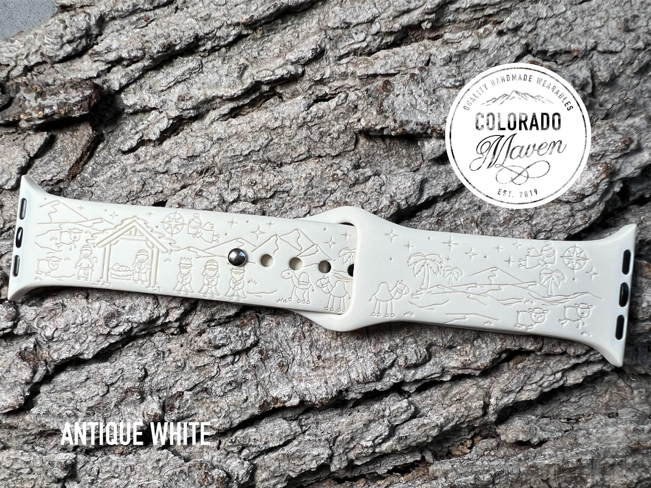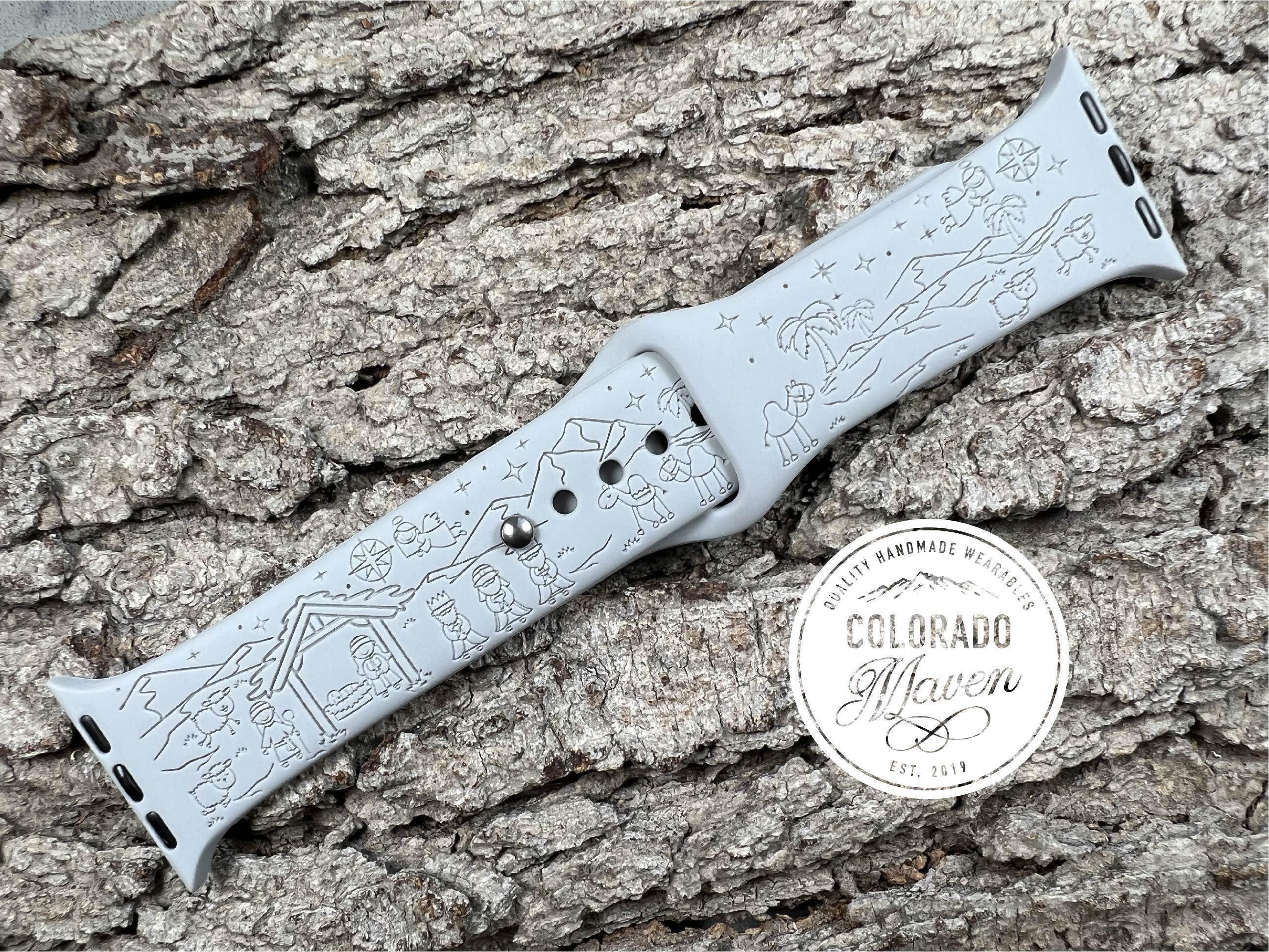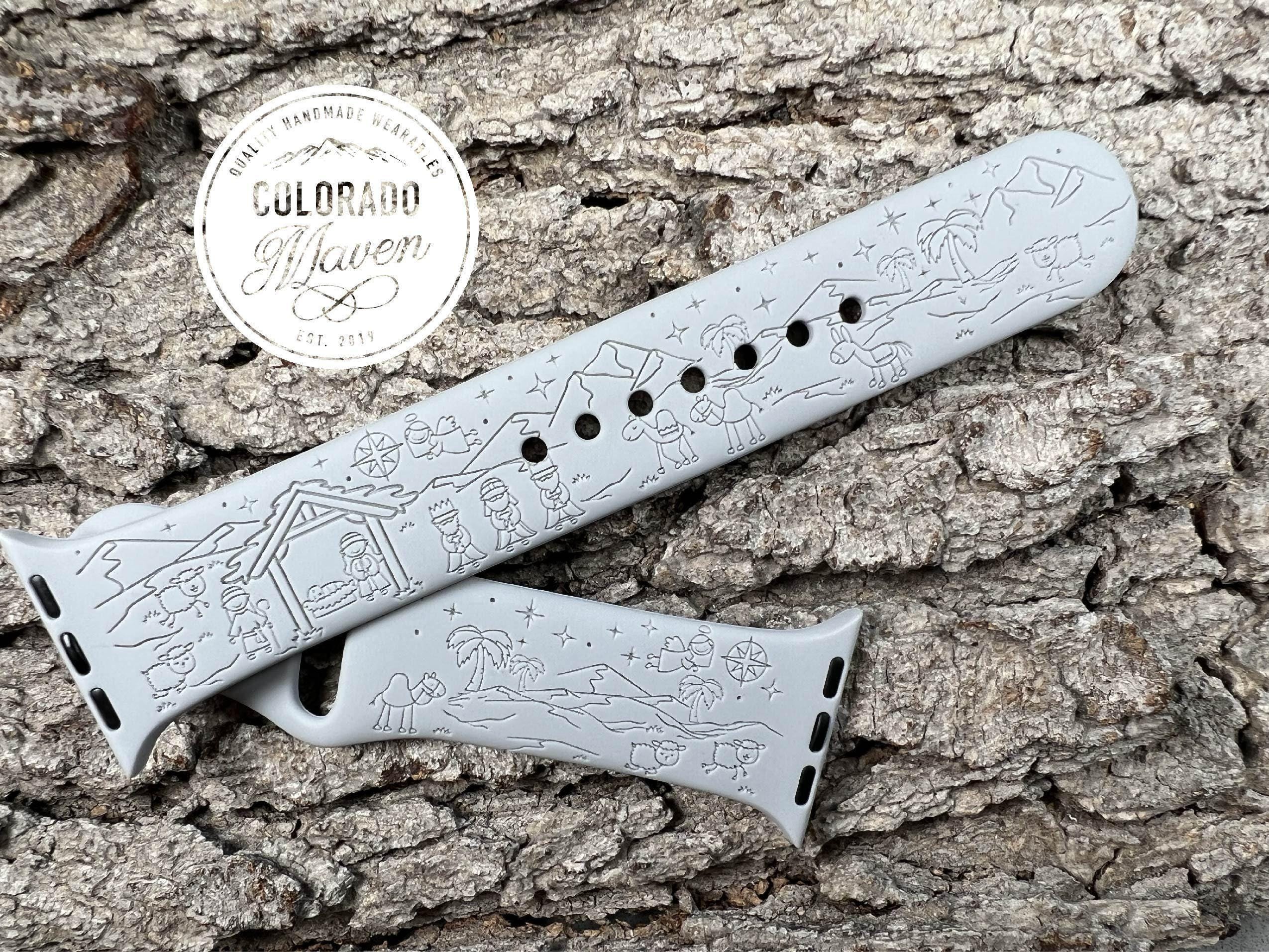 Nativity Christmas Silicone Watch Band Laser Engraved, Apple Watch Compatible Series 1-11, SE 1-3 & Ultra 1-3