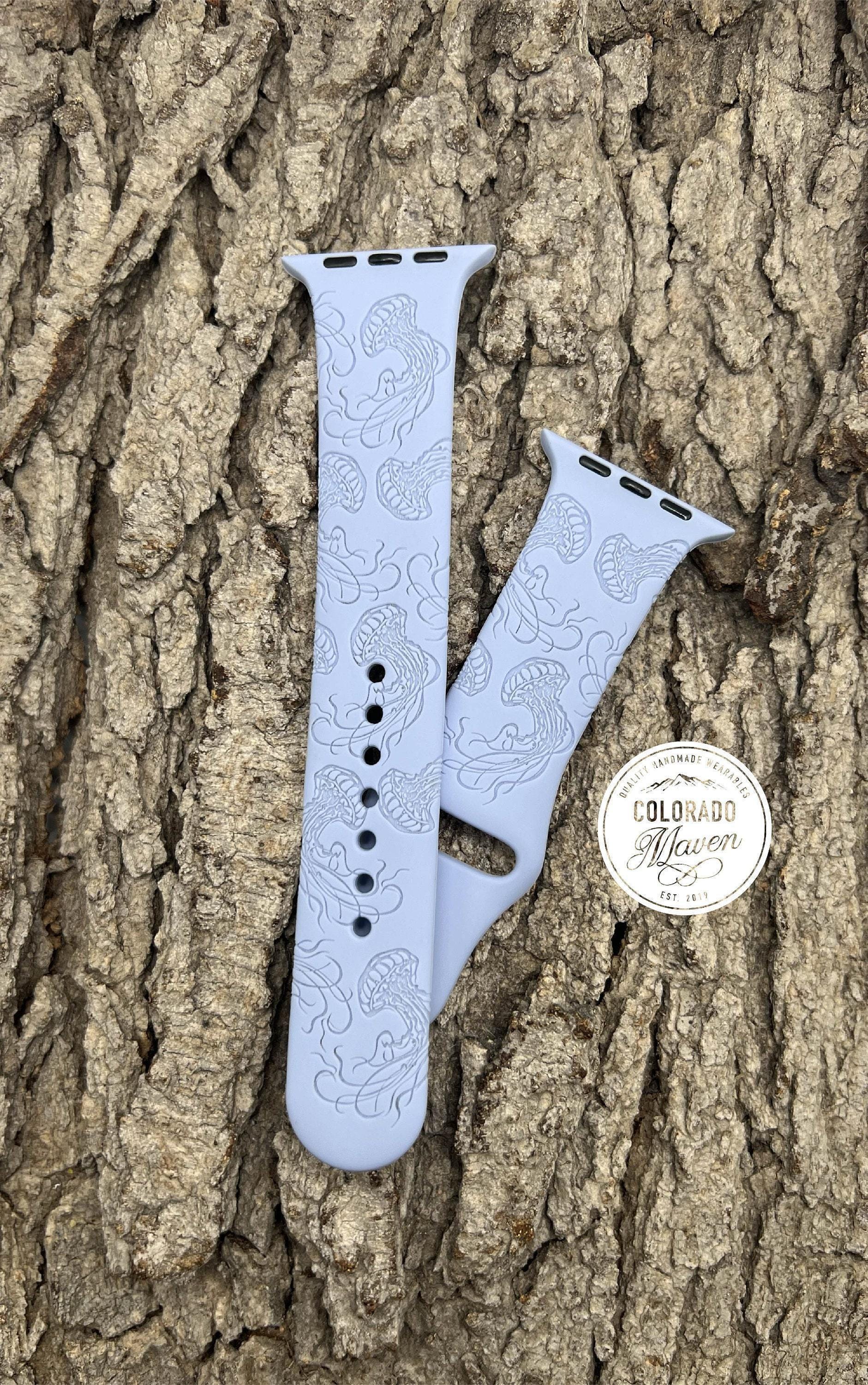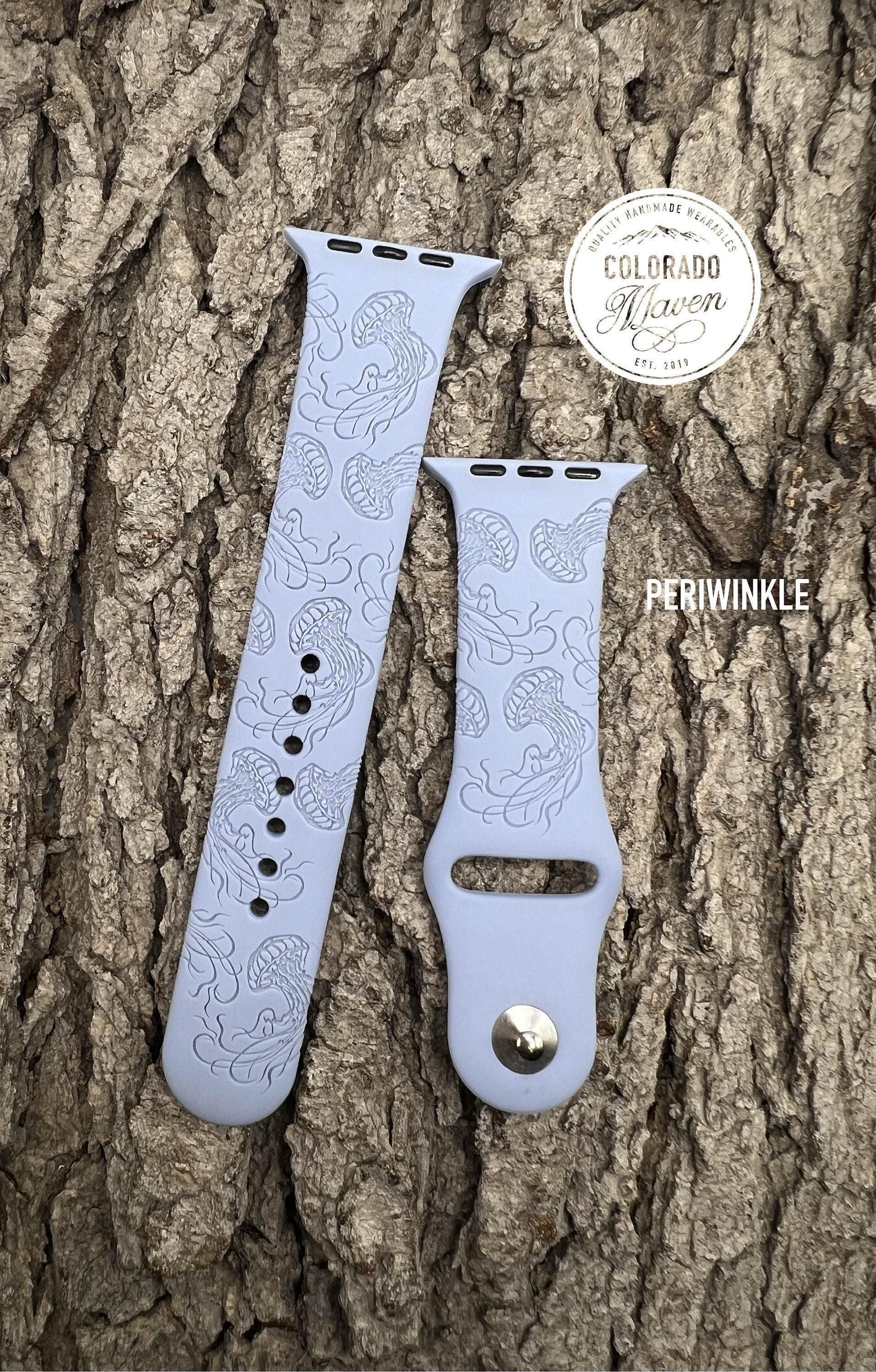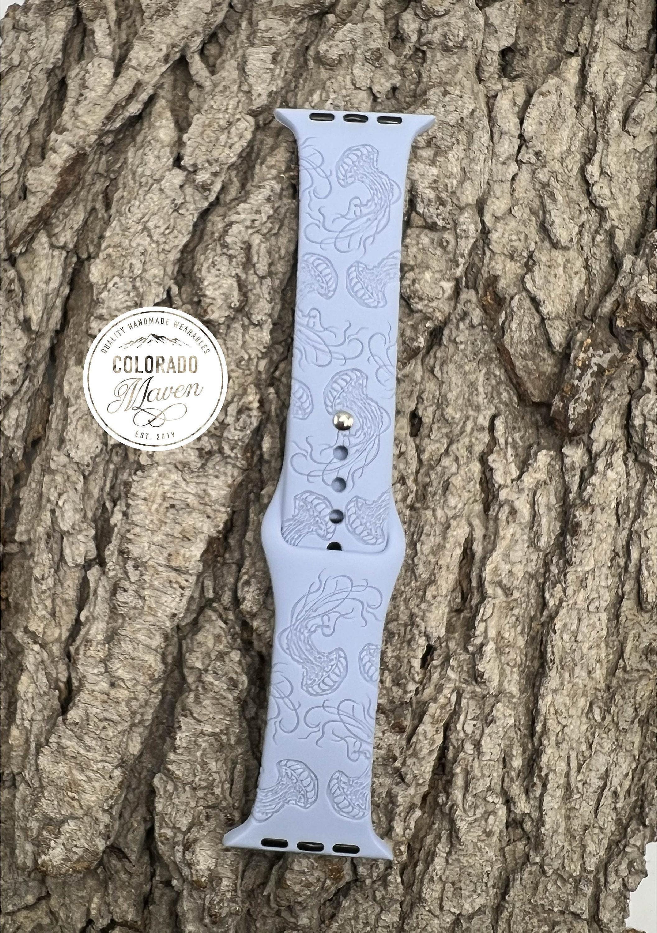 Jellyfish Silicone Watch Band Laser Engraved, Apple Watch Compatible Series 1-11, SE 1-3 & Ultra 1-3