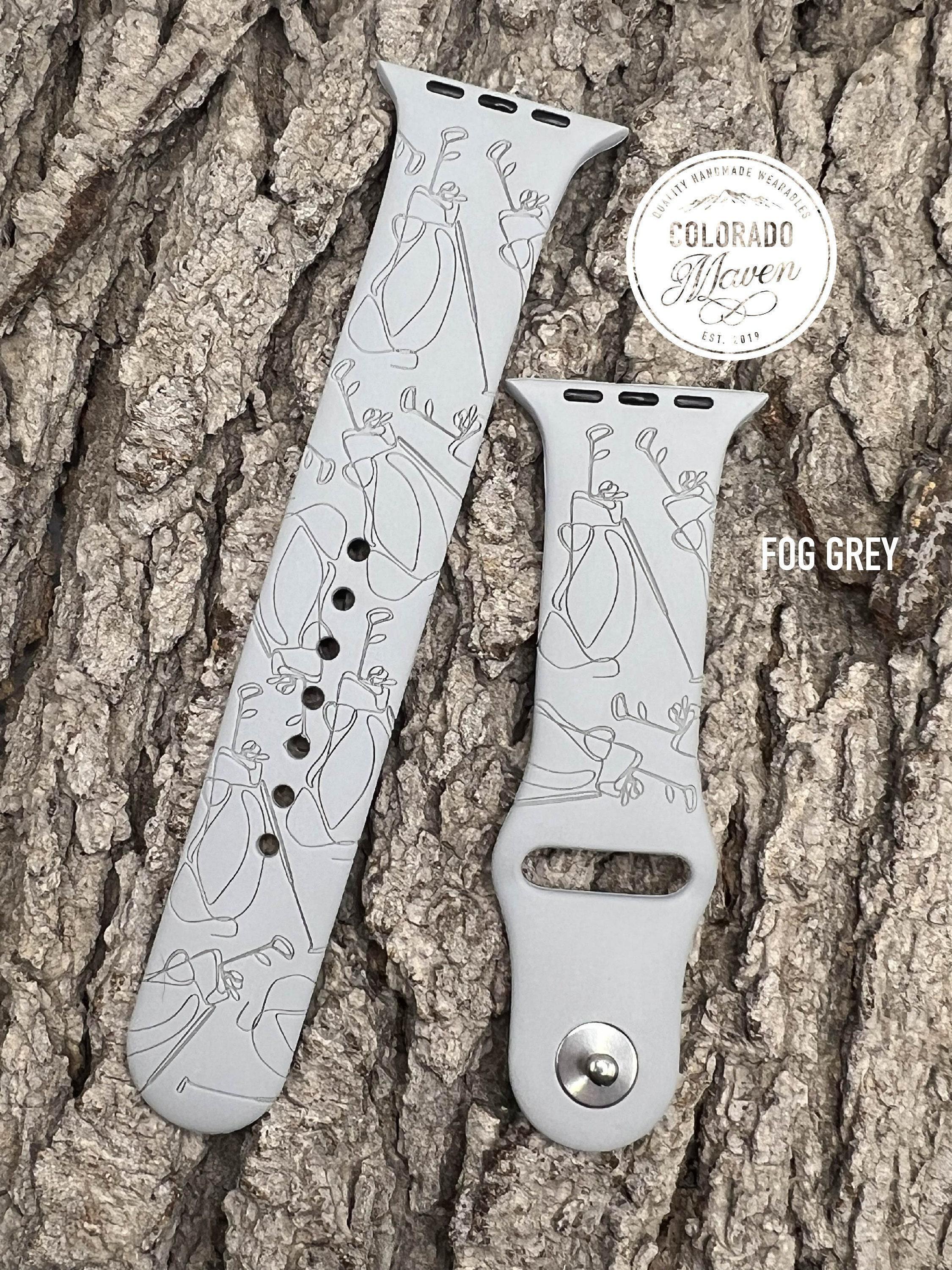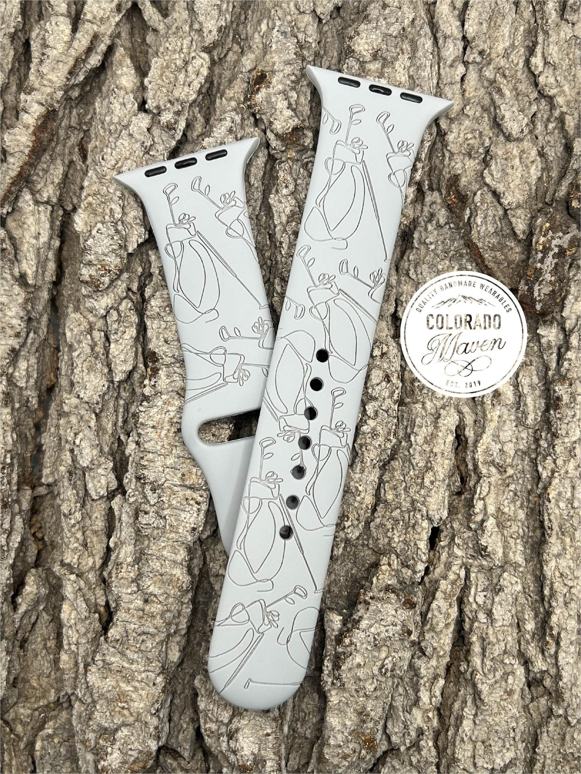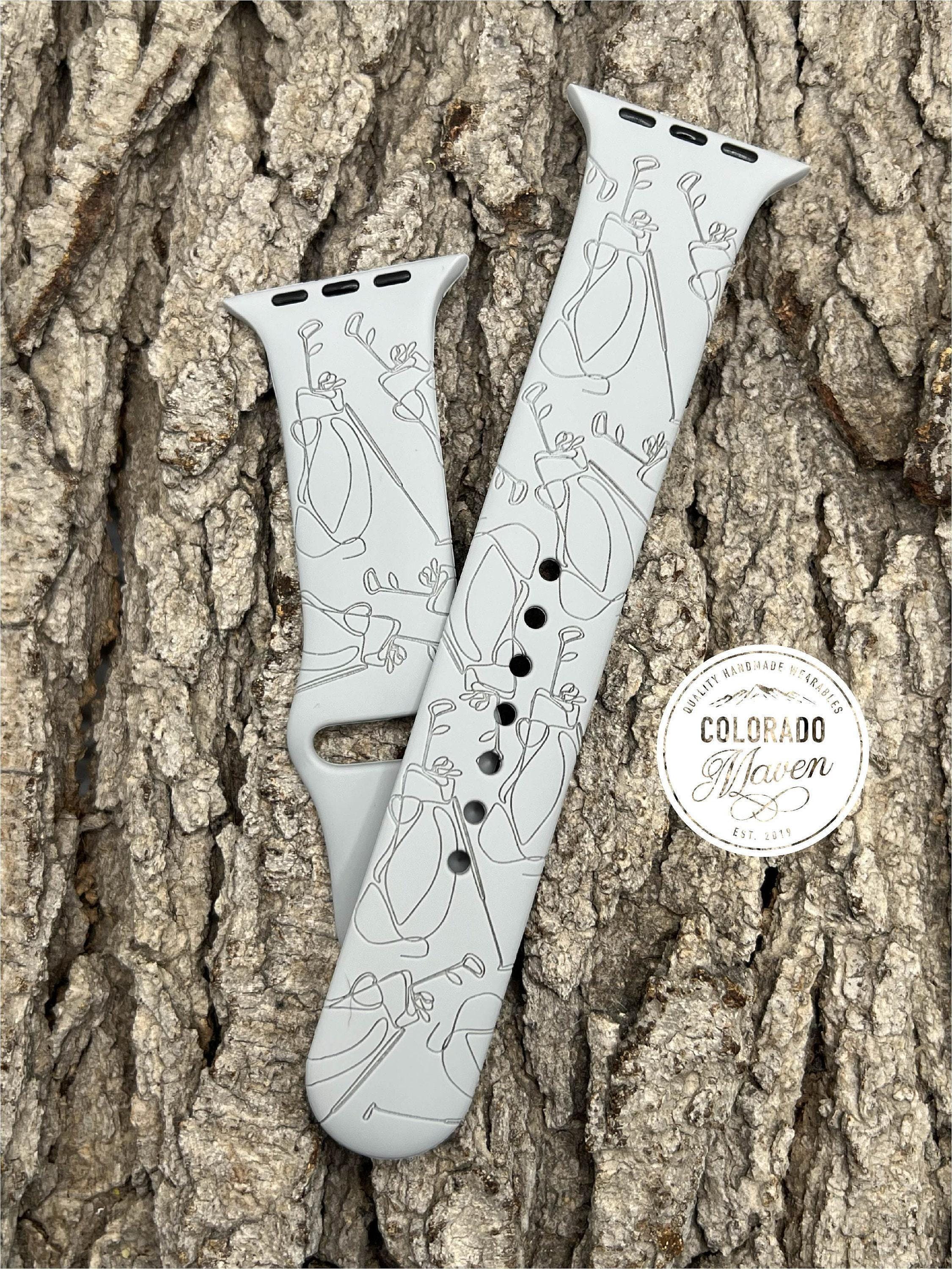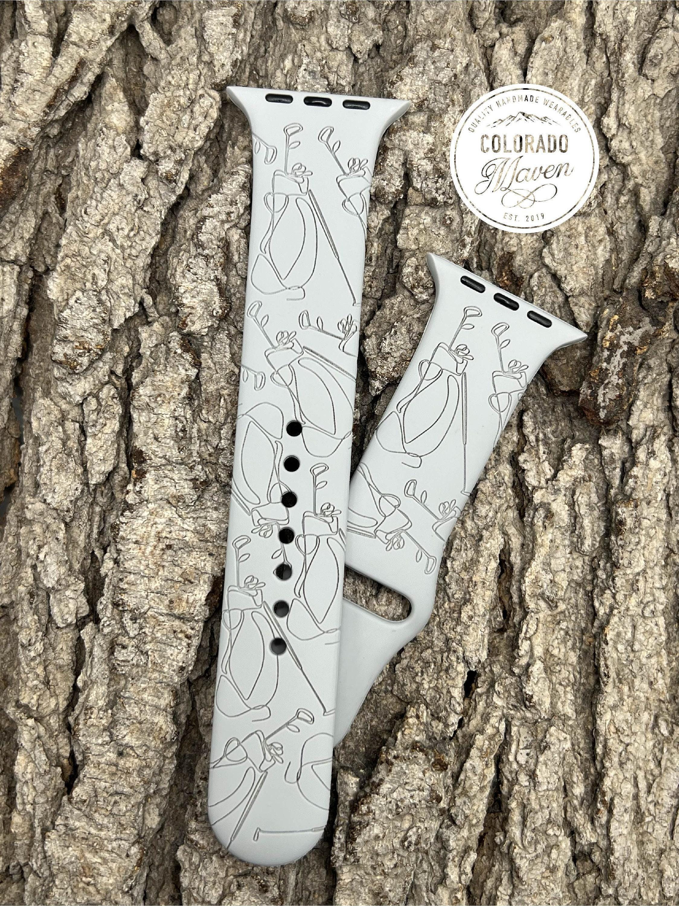 Golf Bag, Golf Silicone Watch Band Laser Engraved, Apple Watch Compatible Series 1-11, SE 1-3 & Ultra 1-3