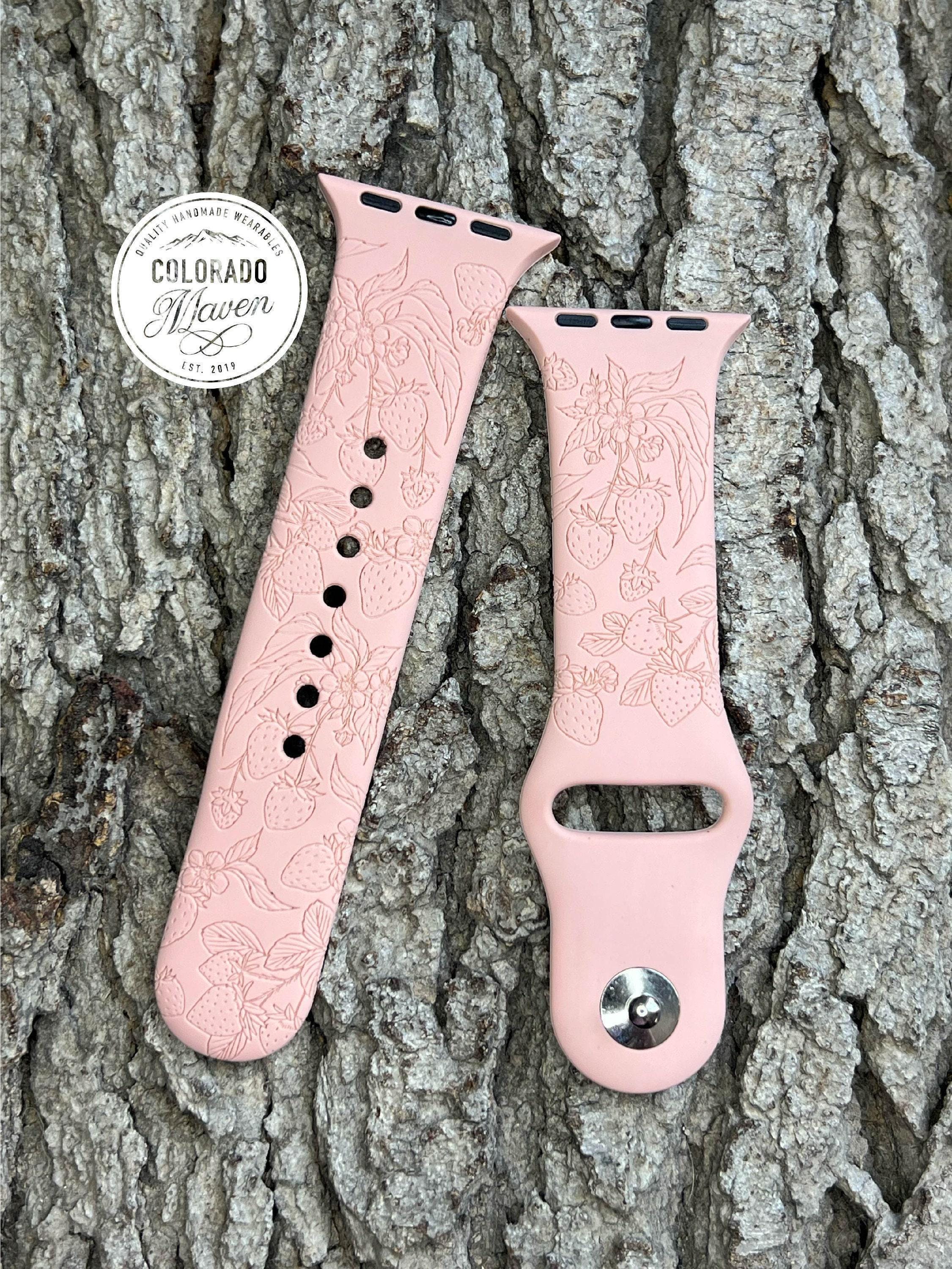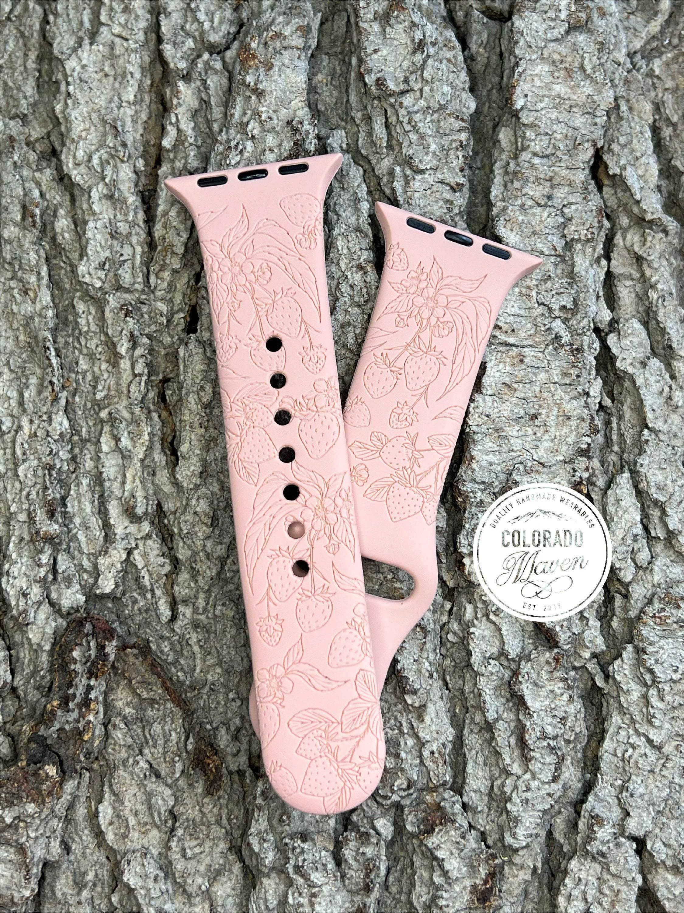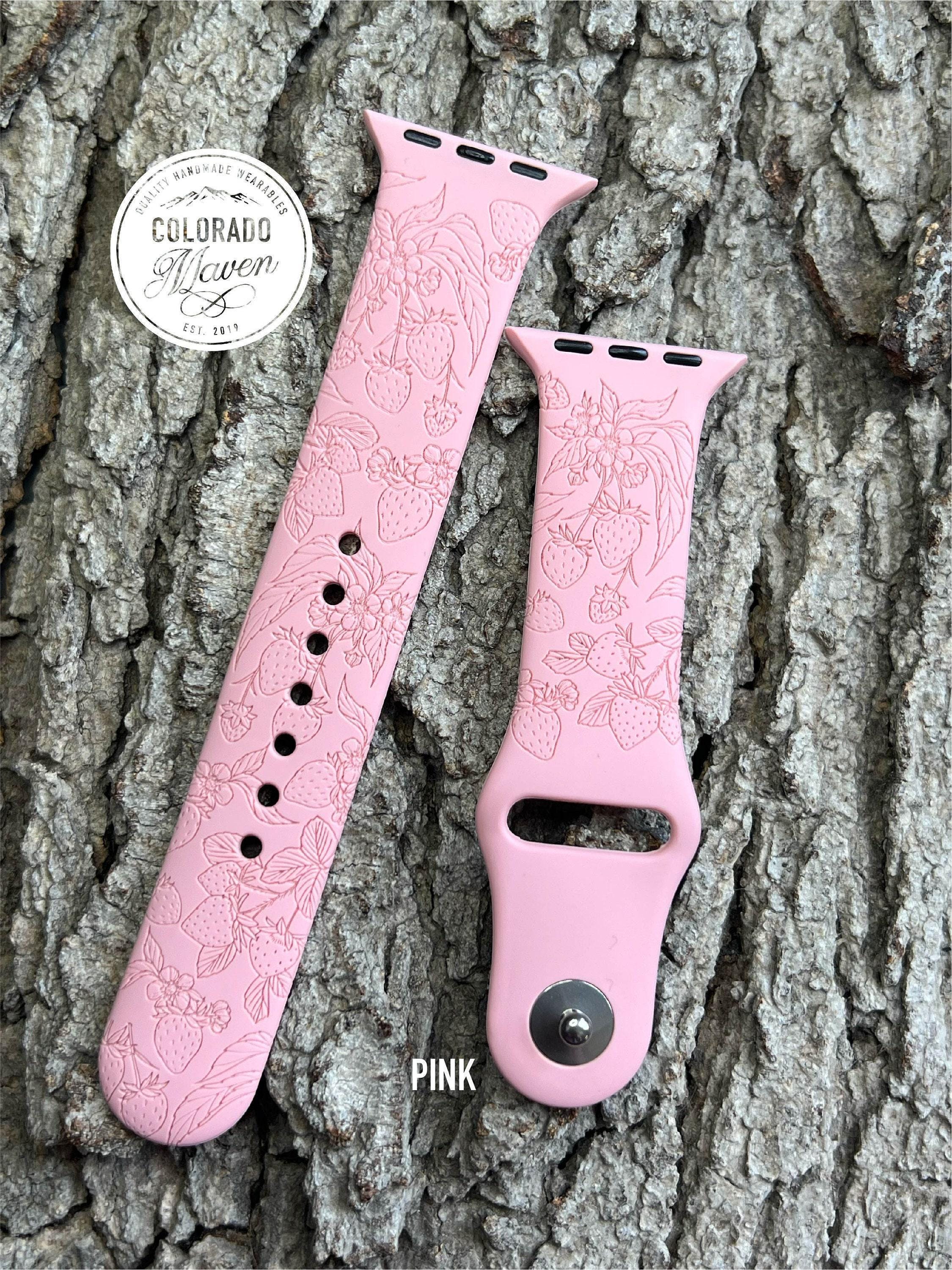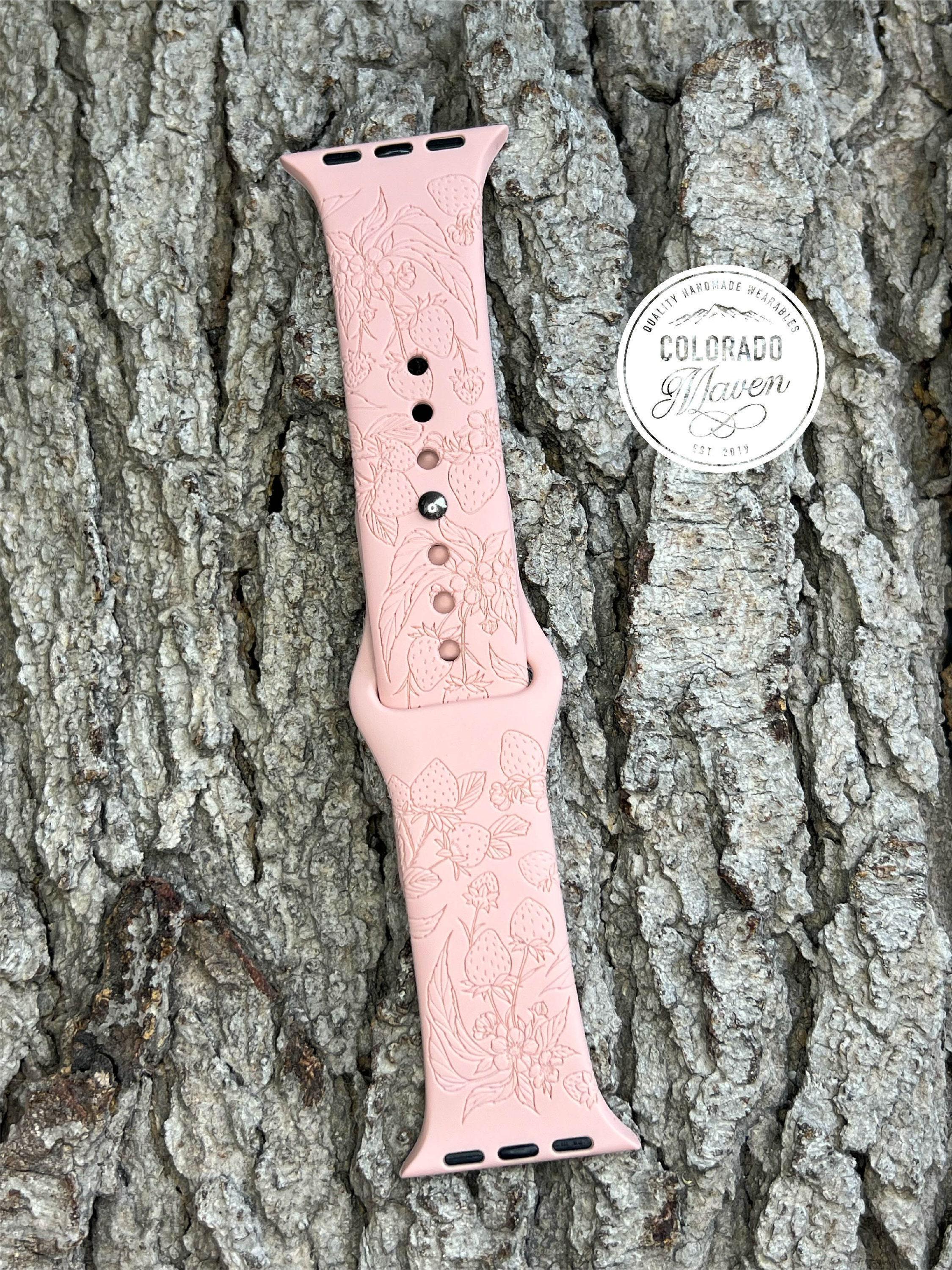 Wild Strawberry Watch Band Silicone Watch Band Laser Engraved, Apple Watch Compatible Series 1-11, SE 1-3 & Ultra 1-3