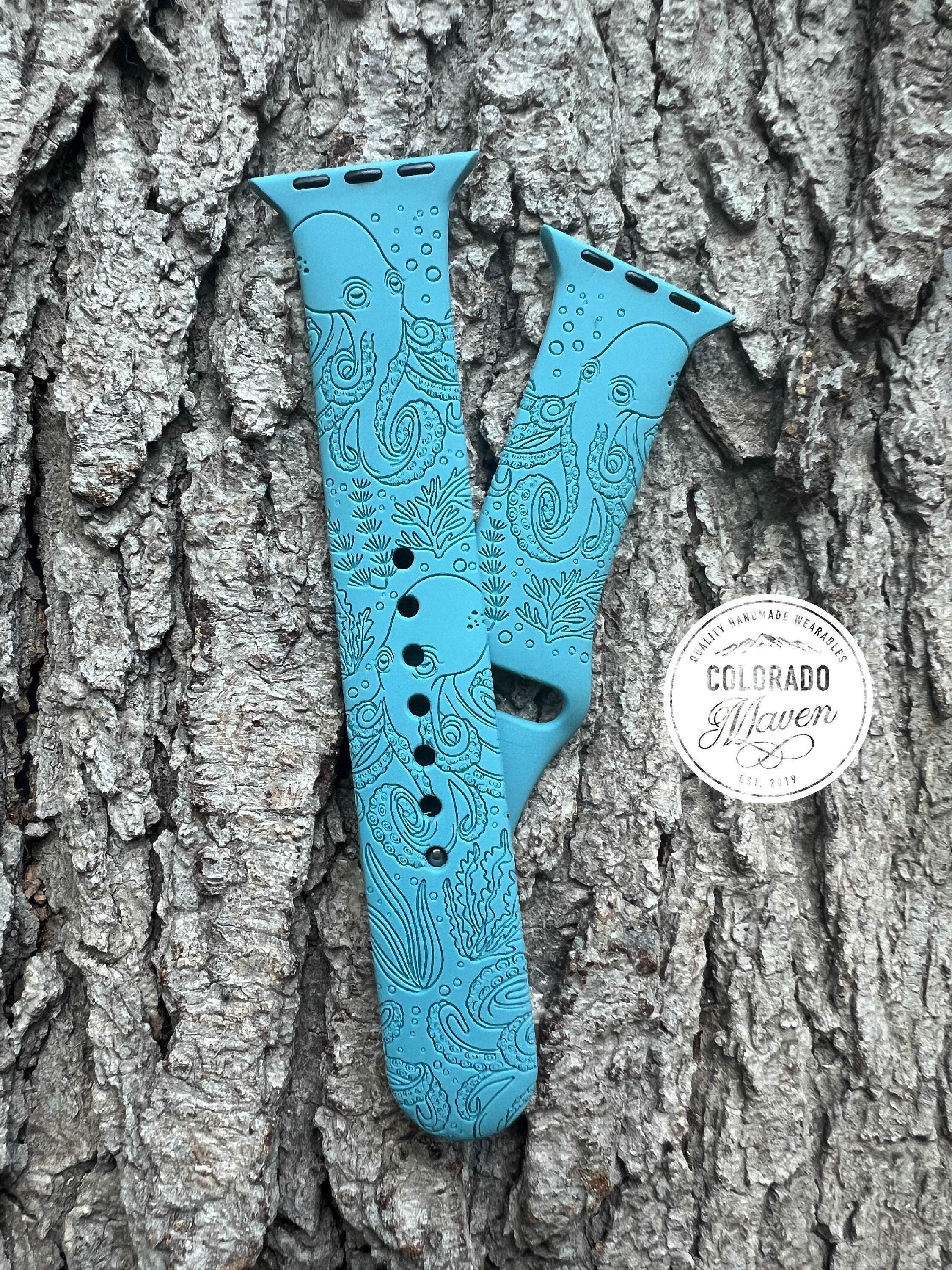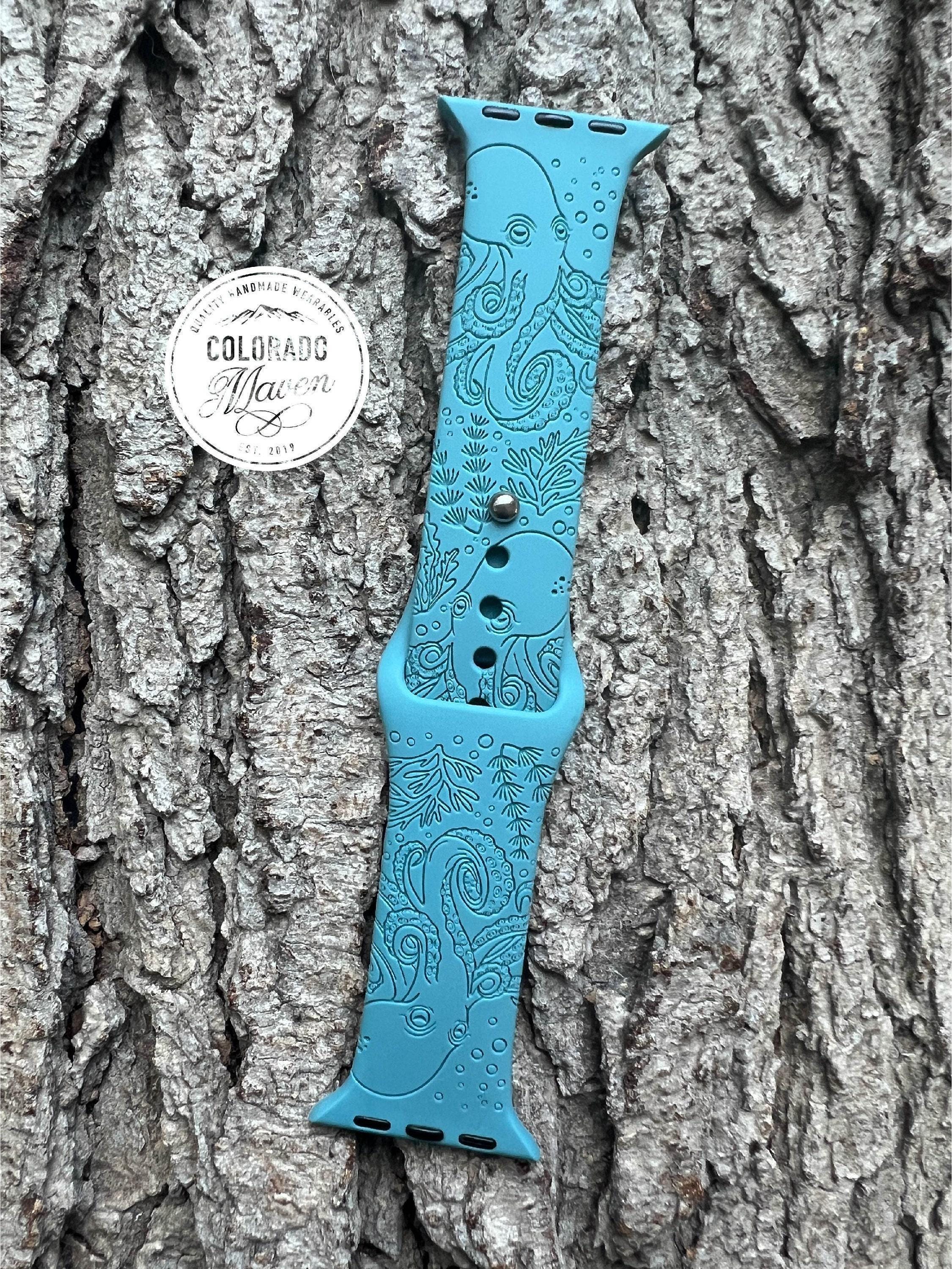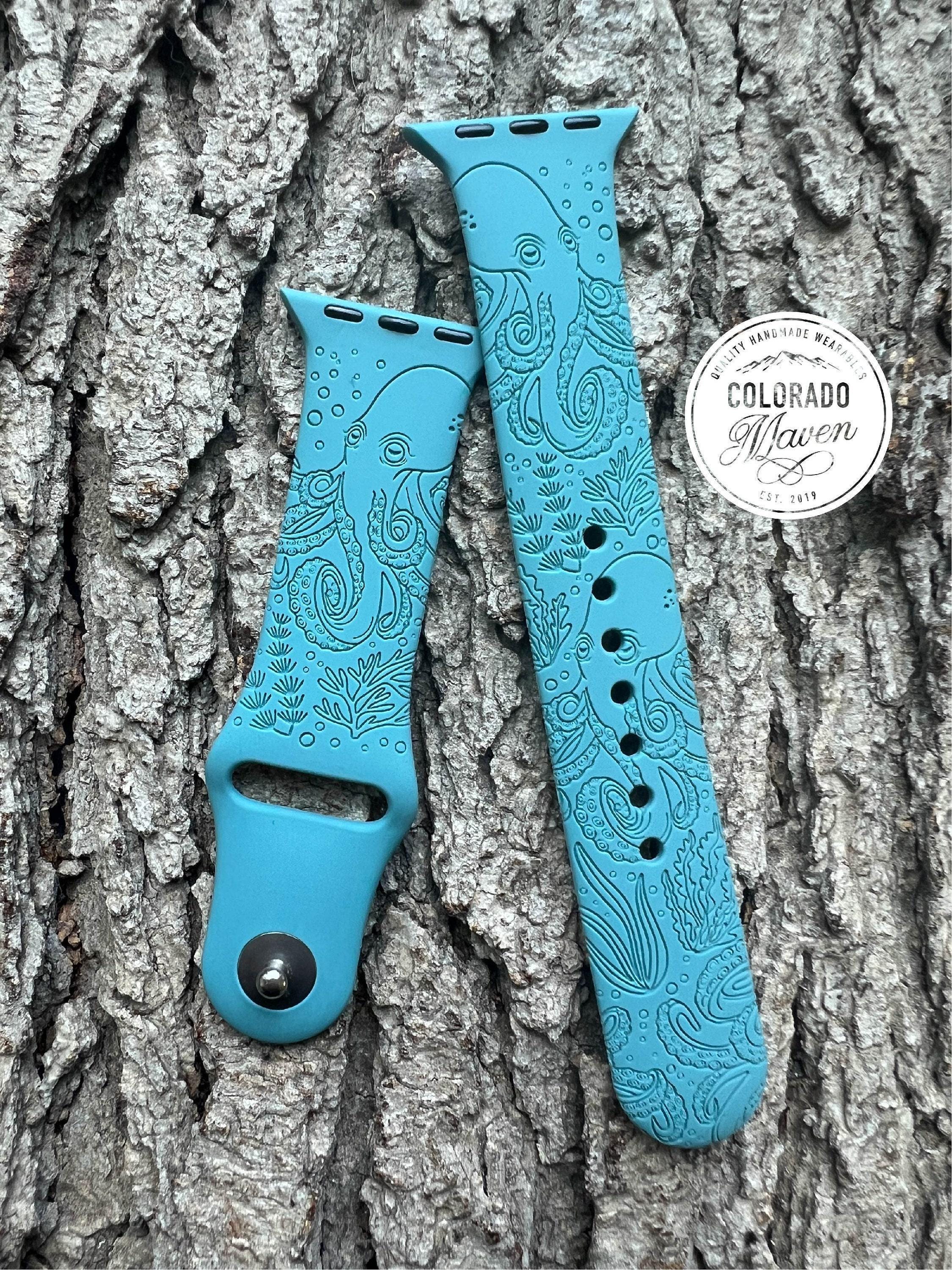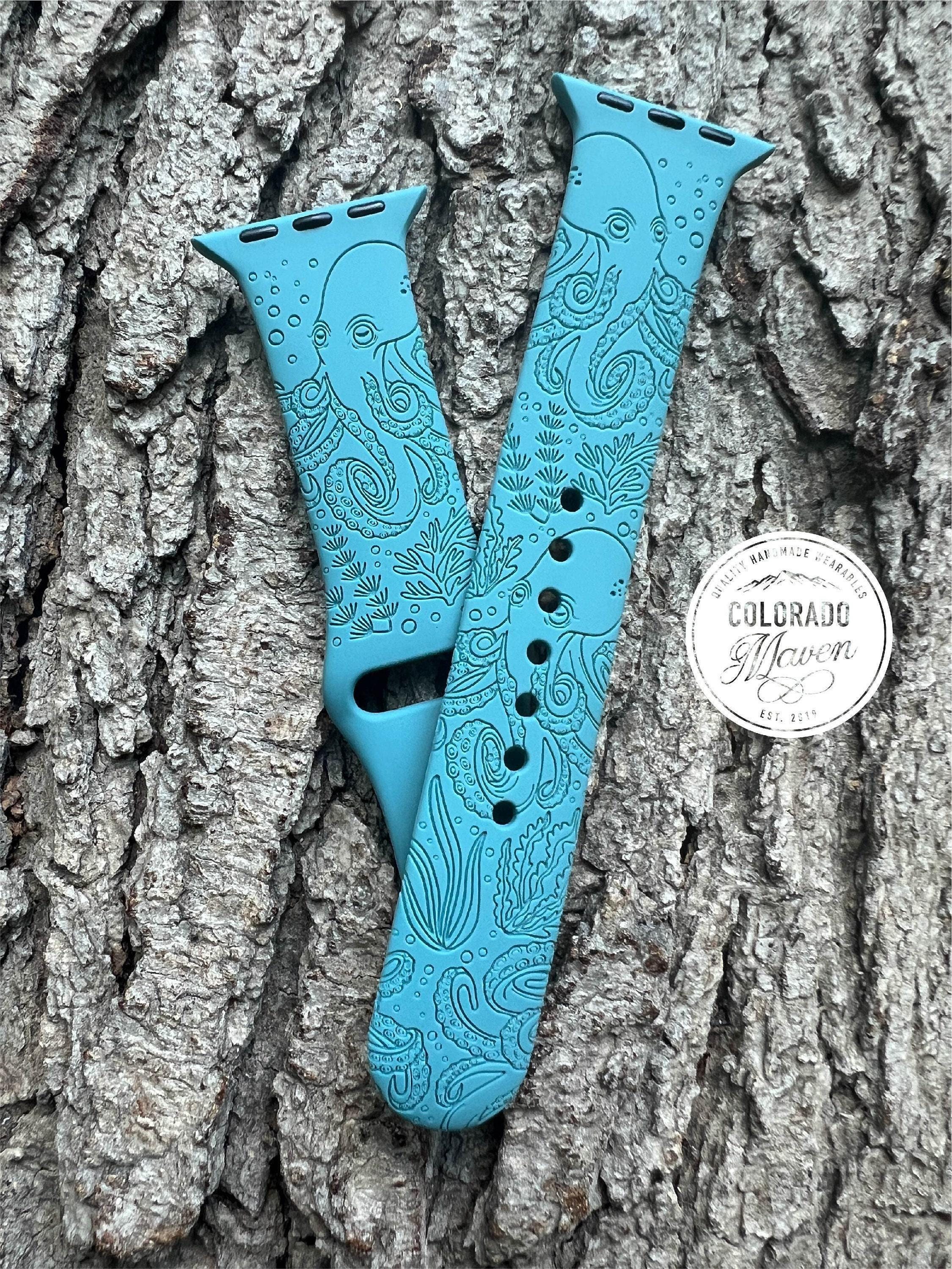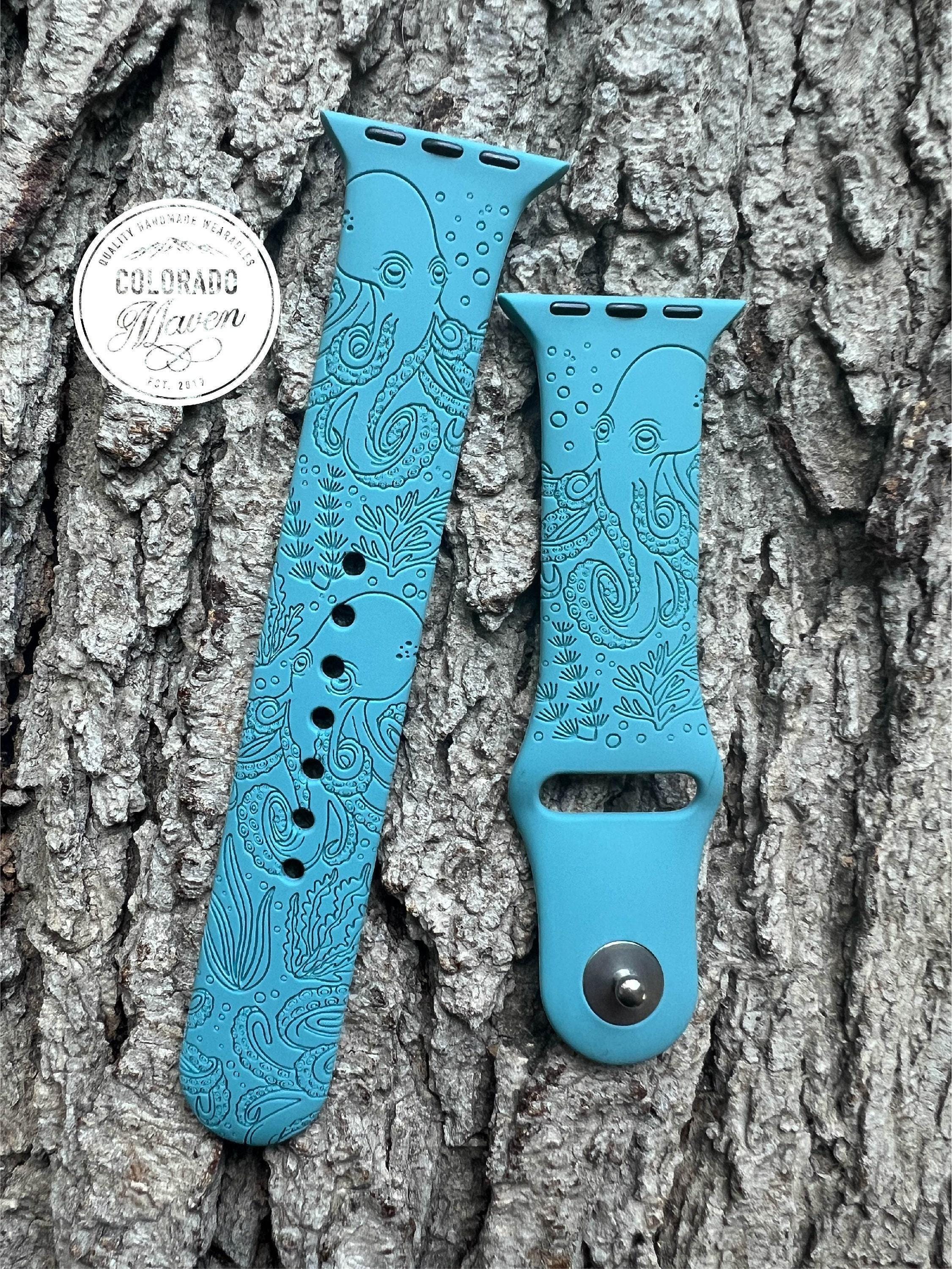 Octopus Sea Life Watch Band Silicone Watch Band Laser Engraved, Apple Watch Compatible Series 1-11, SE 1-3 & Ultra 1-3