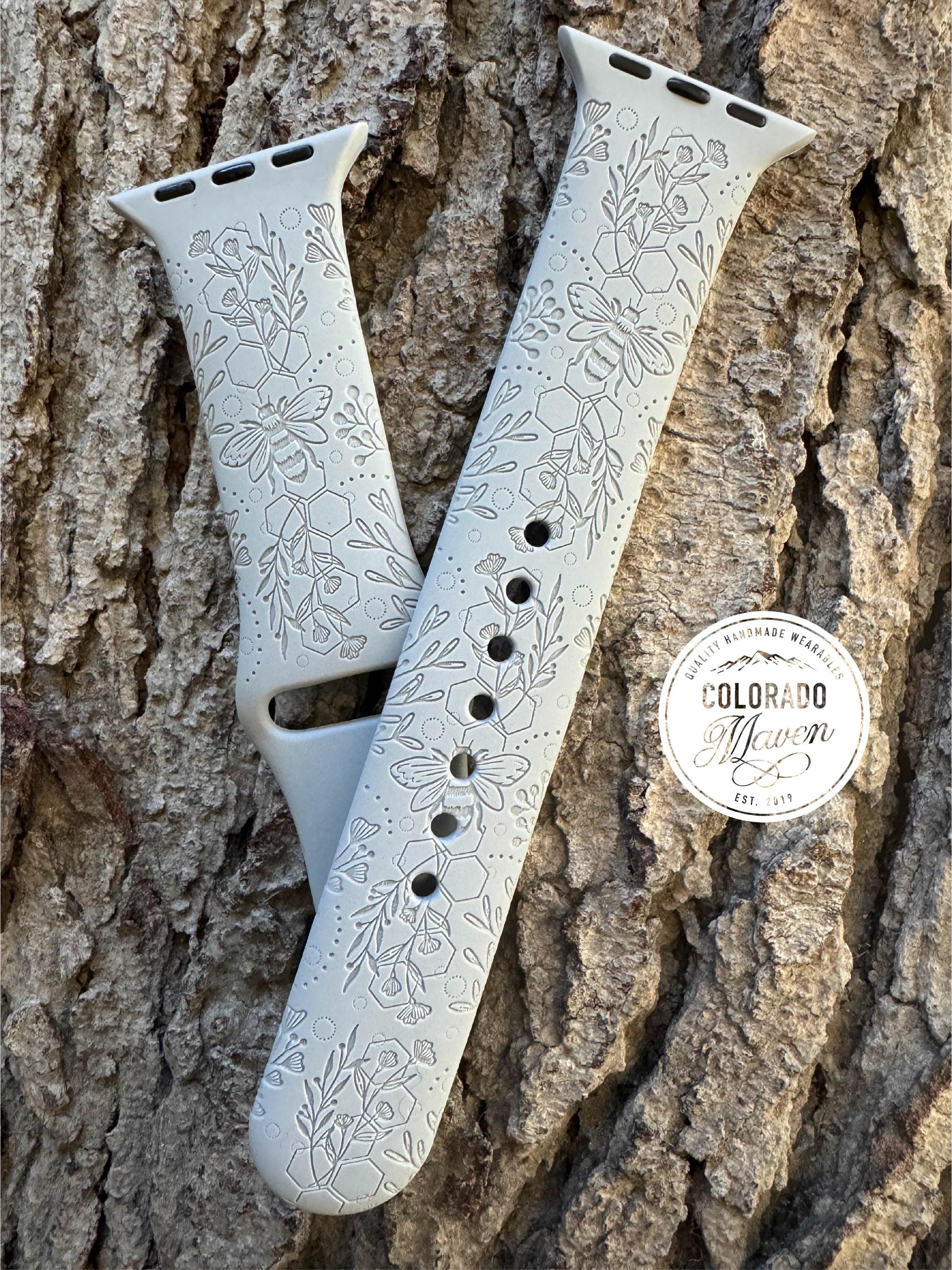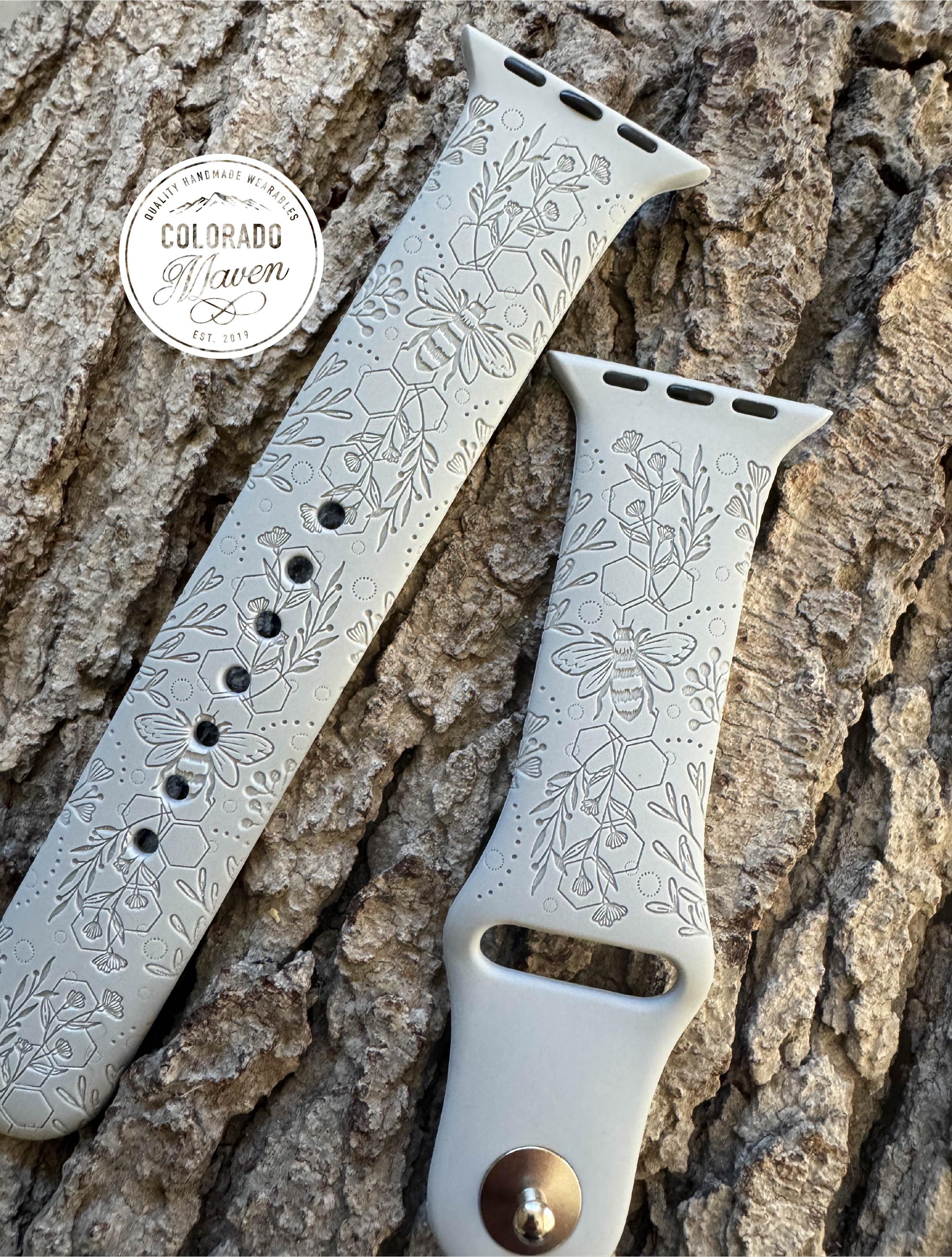 Bee and Honeycomb Floral Silicone Watch Band Laser Engraved, Apple Watch Compatible Series 1-11, SE 1-3 & Ultra 1-3