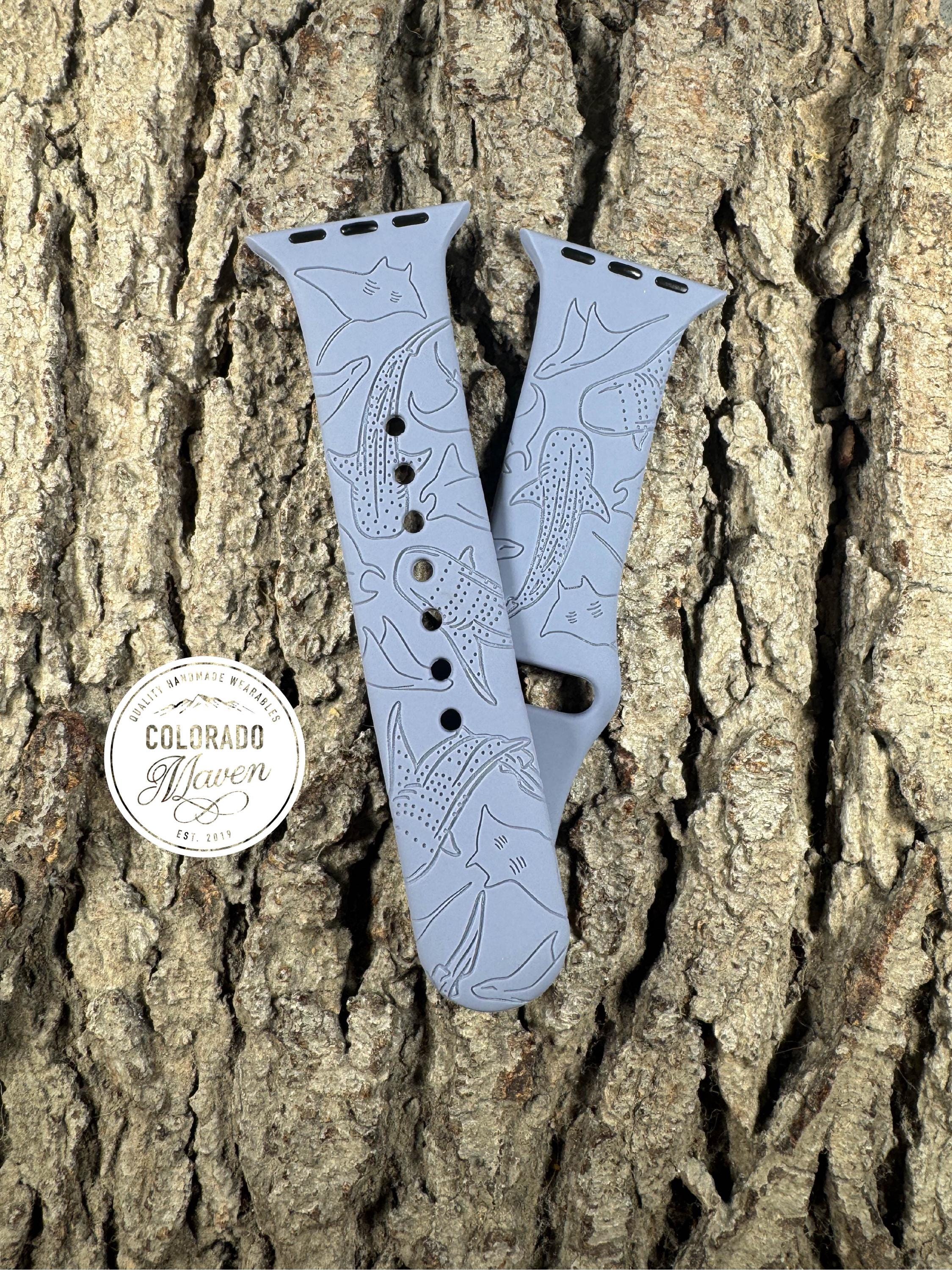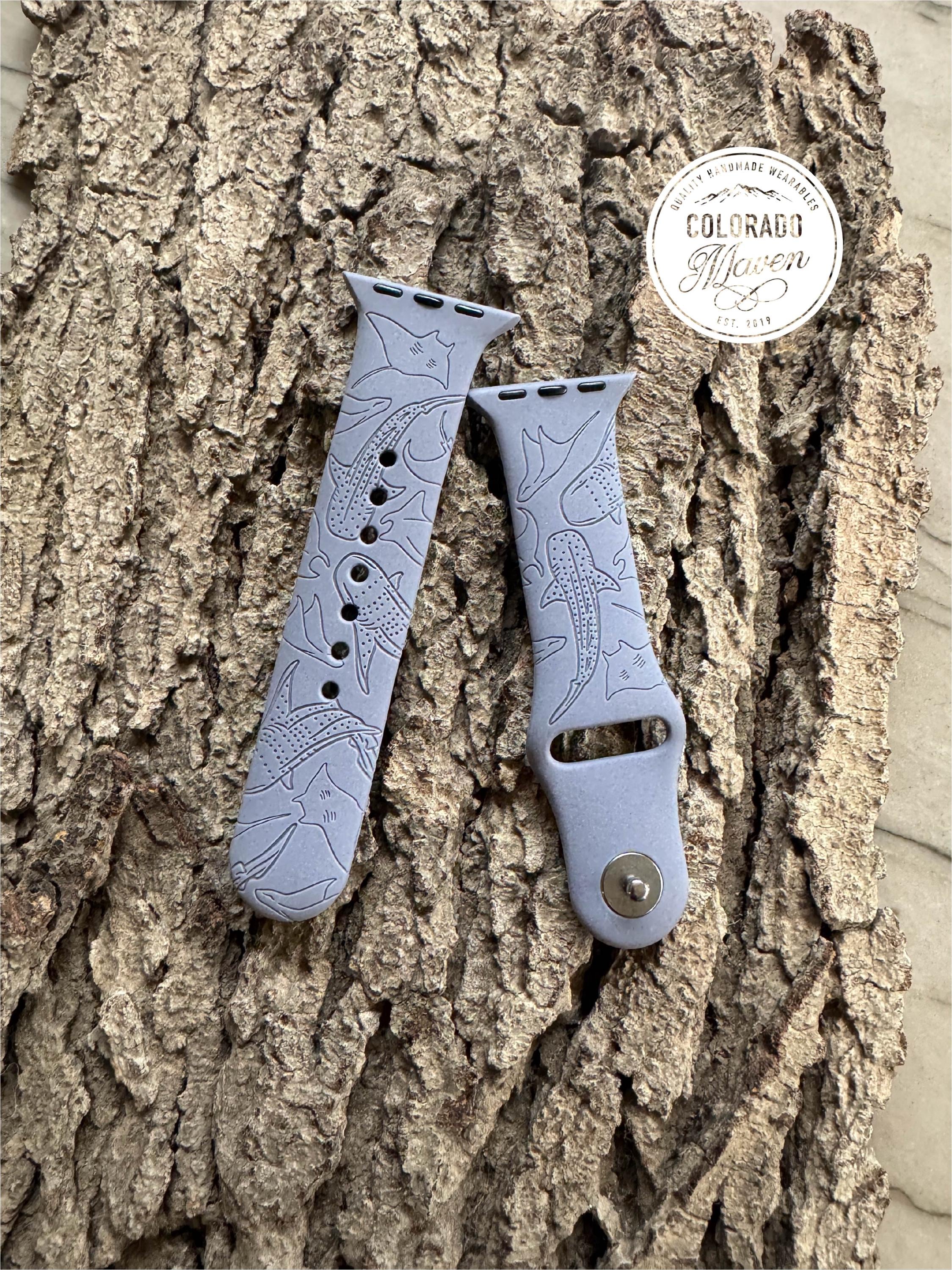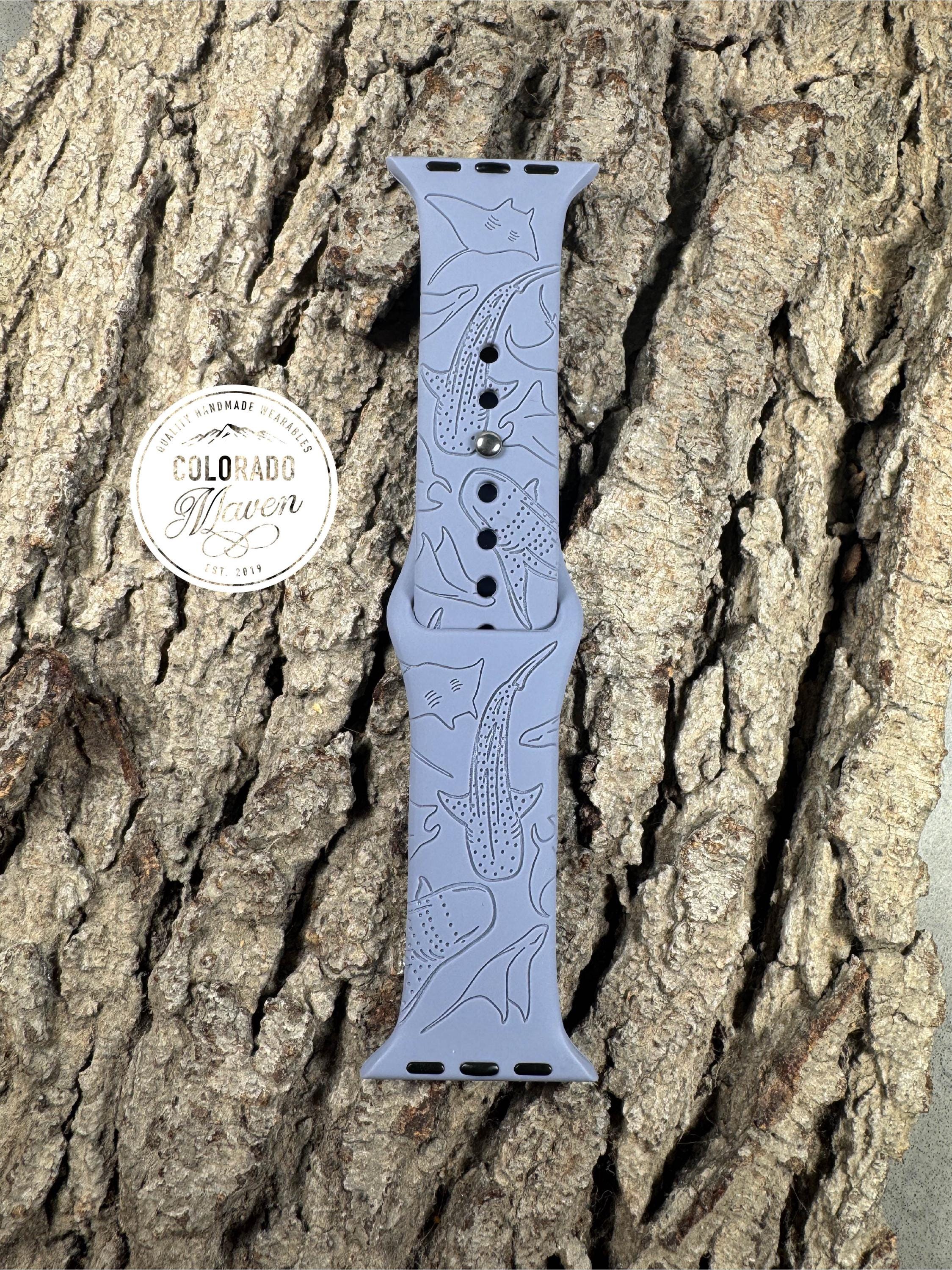 Sea Life Whale Shark - Stingray - Manta Ray Silicone Watch Band Laser Engraved, Apple Watch Compatible Series 1-11, SE 1-3 & Ultra 1-3