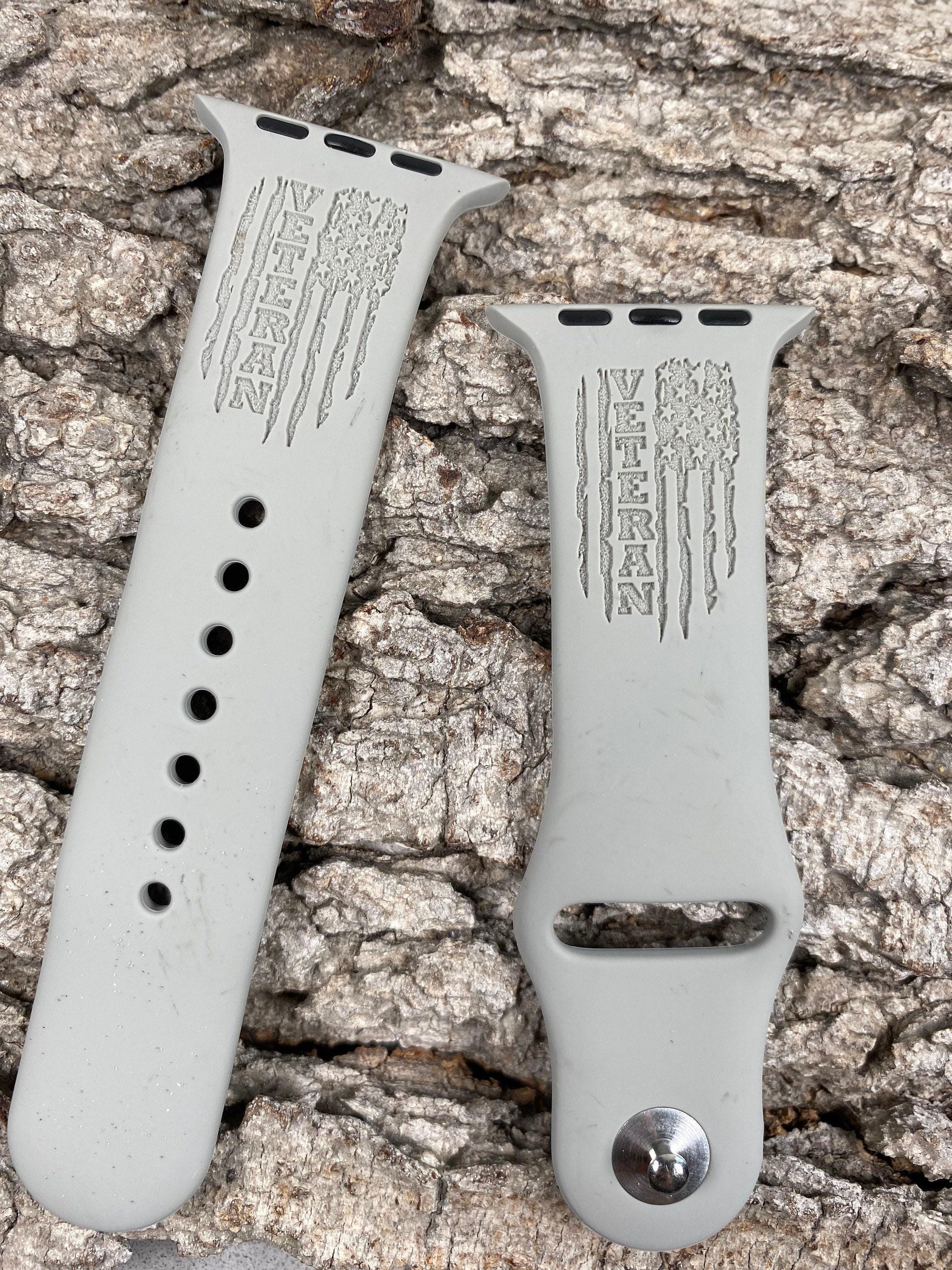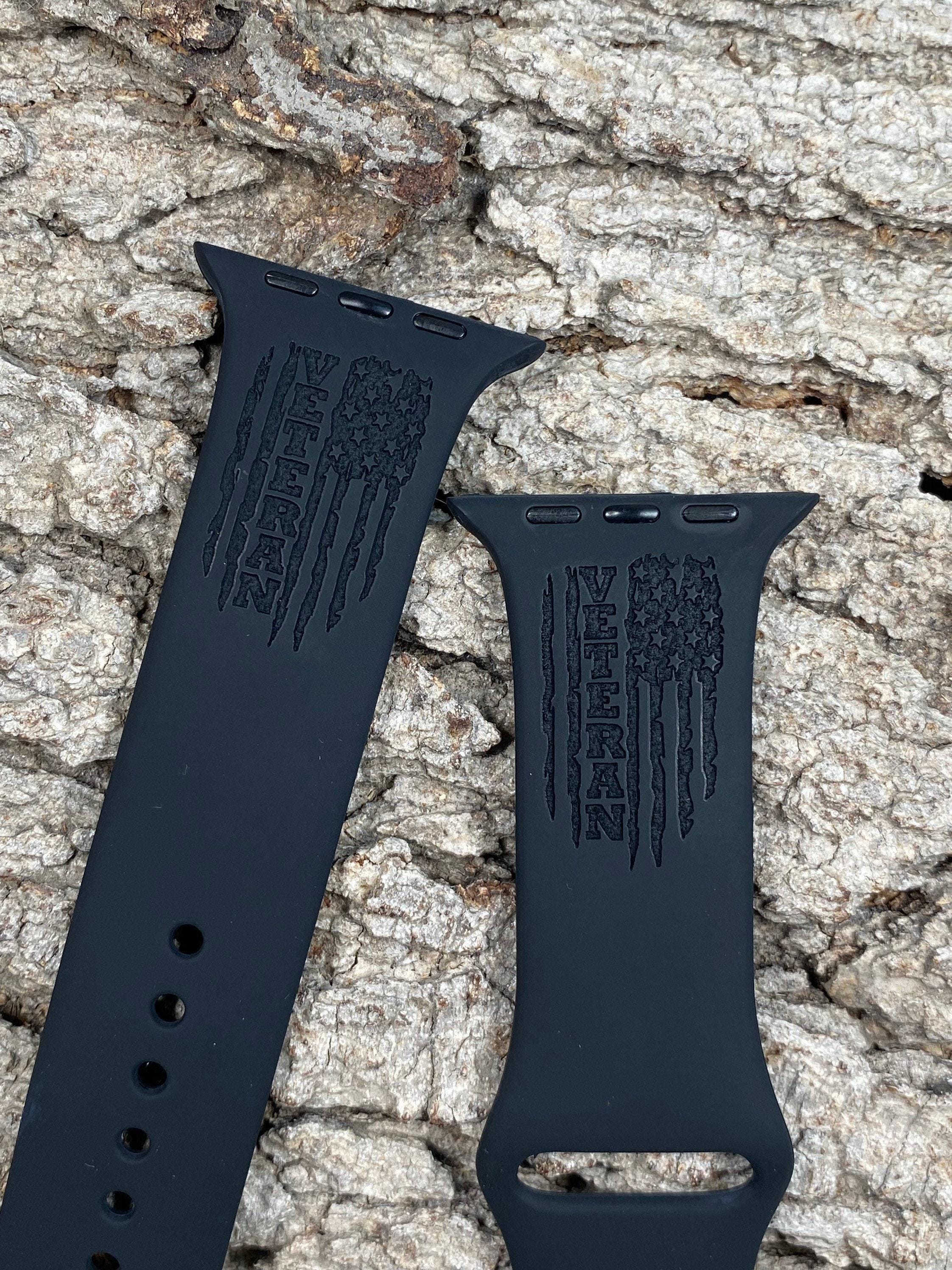 Military Veteran American Flag Silicone Watch Band Laser Engraved, Apple Watch Compatible Series 1-11, SE 1-3 & Ultra 1-3